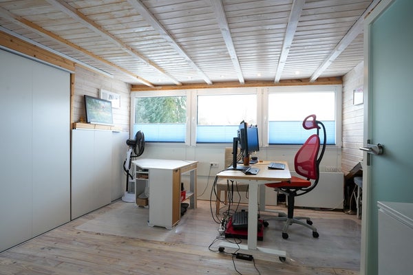 De achtertuin, gelegen op het Zuidwesten, beschikt over een tuinhuis ideaal voor fietsen of tuinmateriaal. En een handige achterom.