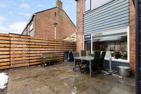 Deze hoekwoning in een gezellige woonwijk biedt alles wat je zoekt in een betaalbare woning. Gelegen op een perceel van 160 m², heeft de woning een ruime tuin met veel privacy, een praktische zijingang en een royale stenen berging van circa 14 m², perfect voor opslag of hobby’s. De indeling bestaat uit een lichte woonkamer, een halfopen keuken met inbouwapparatuur en een bijkeuken met achteringang. Op de eerste verdieping zijn drie slaapkamers en een geheel betegelde badkamer met douche en wastafel. De zolder met cv-ketel biedt extra bergruimte. De tuin, gelegen op het oosten, is deels bestraat en heeft drie fruitbomen. Kortom, een solide basis met mogelijkheden voor starters om hun woonwensen waar te maken.