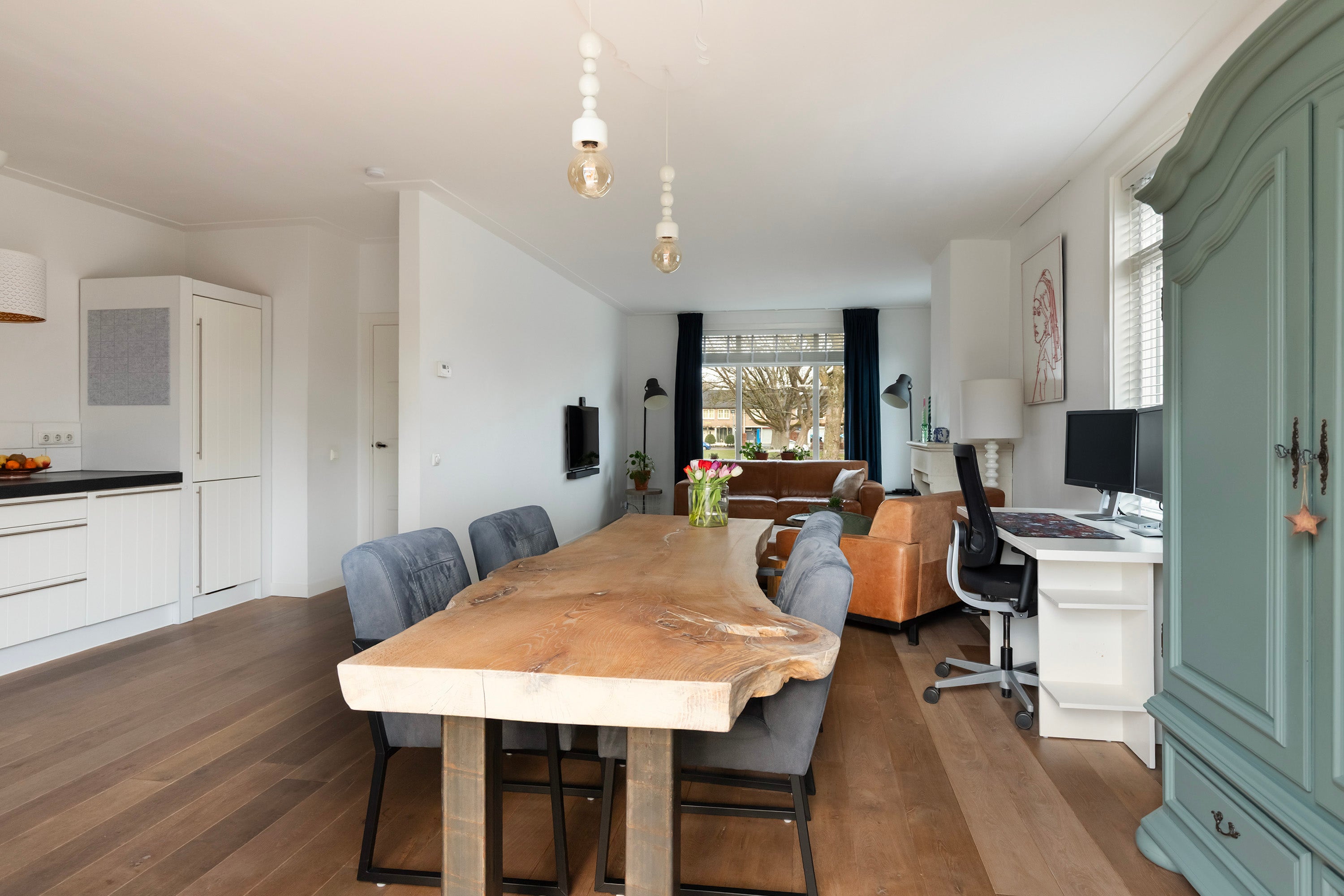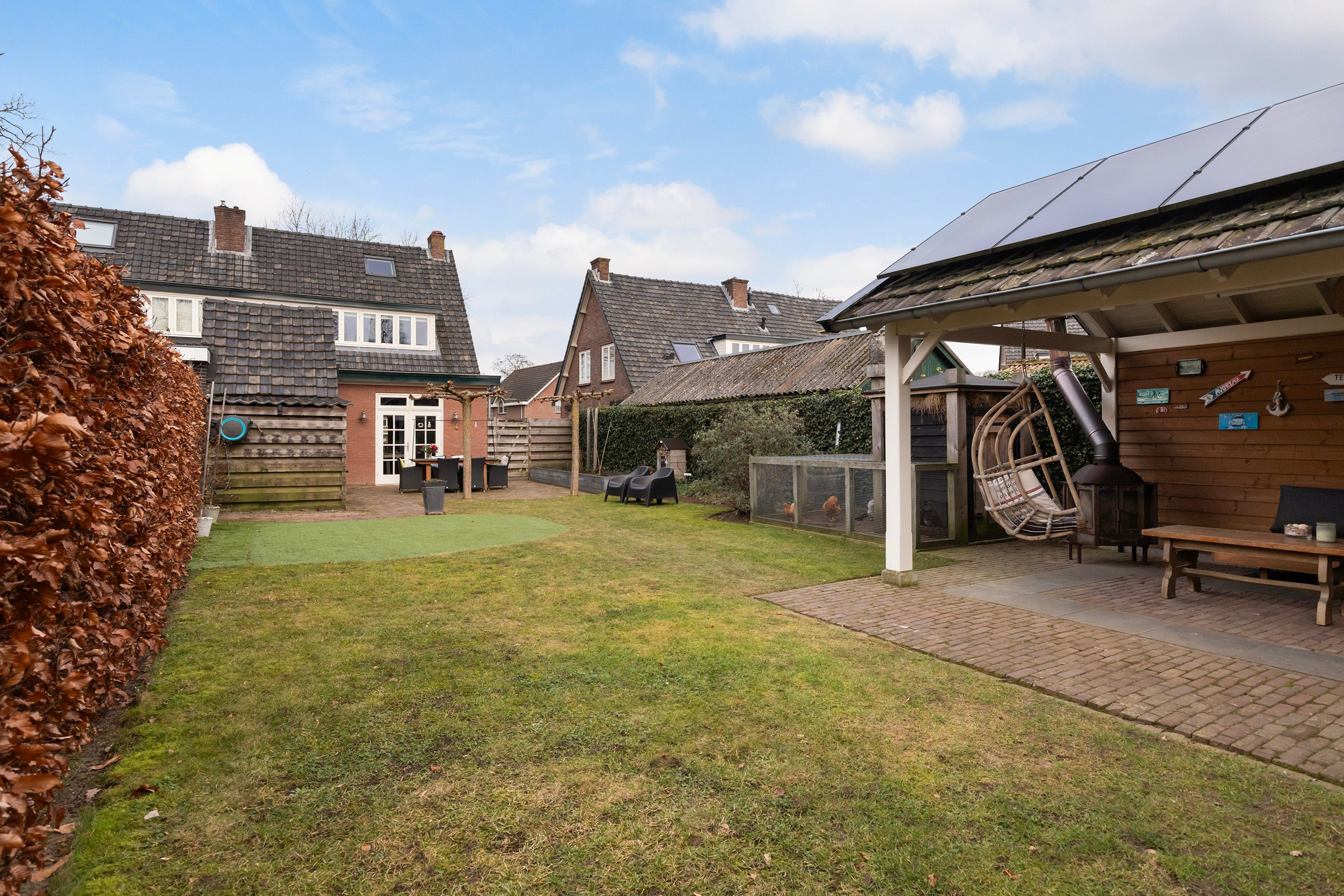Dit sfeervolle twee-onder-een-kapwoning, gebouwd in 1938, belichaamt het karakter van de jaren ‘30, met modern wooncomfort. De huidige eigenaren hebben de woning grondig gemoderniseerd en uitgebreid, waardoor er een royale en lichte leefruimte is ontstaan, inclusief dakkapellen op beide verdiepingen. Met circa 105 m² woonoppervlak en vier slaapkamers biedt dit huis veel ruimte. De begane grond beschikt over een royale woonkamer met open haard en een moderne keuken met inbouwapparatuur. Op de eerste verdieping vindt u drie slaapkamers en een vernieuwde badkamer (2024) met vloerverwarming. De diepe achtertuin van 220 m², met een houten schuur en overkapping, biedt privacy en een terras. De woning beschikt over zonnepanelen en vloerverwarming, en heeft een energielabel C.