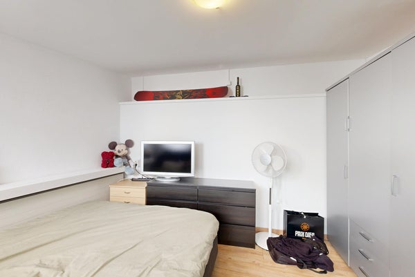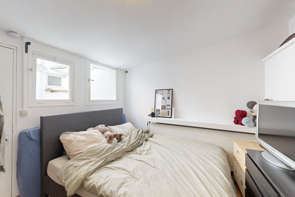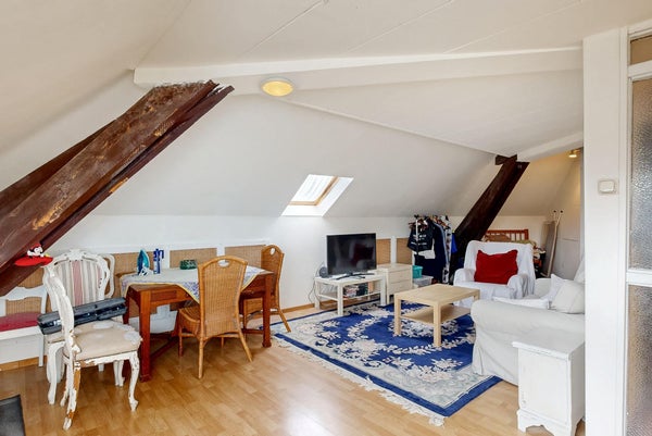De slaapkamer van ca. 11 m² beschikt over een muurkast. De royale slaapkamer van ca. 37 m² biedt daarnaast veel bergruimte onder het dakbeschot en toegang tot de vliering.