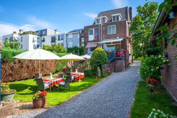 Het souterrain omvat een provisieruimte, bergruimte, stookruimte, een bedrijfskeuken van ca. 20m² en een zitkamer van ca. 16.3m², evenals een kleine badkamer en een slaapkamer. De begane grond heeft een entree, een ruime woonkamer met erker en originele schuifdeuren, en een ontbijtzaal met toegang tot een terras. De eerste verdieping bevat 6 hotelkamers, allemaal met privévoorzieningen. Op de tweede verdieping zijn nog eens 3 hotelkamers te vinden. Dit herenhuis heeft een woonoppervlakte van 350m² en beschikt over een achter- en voortuin.