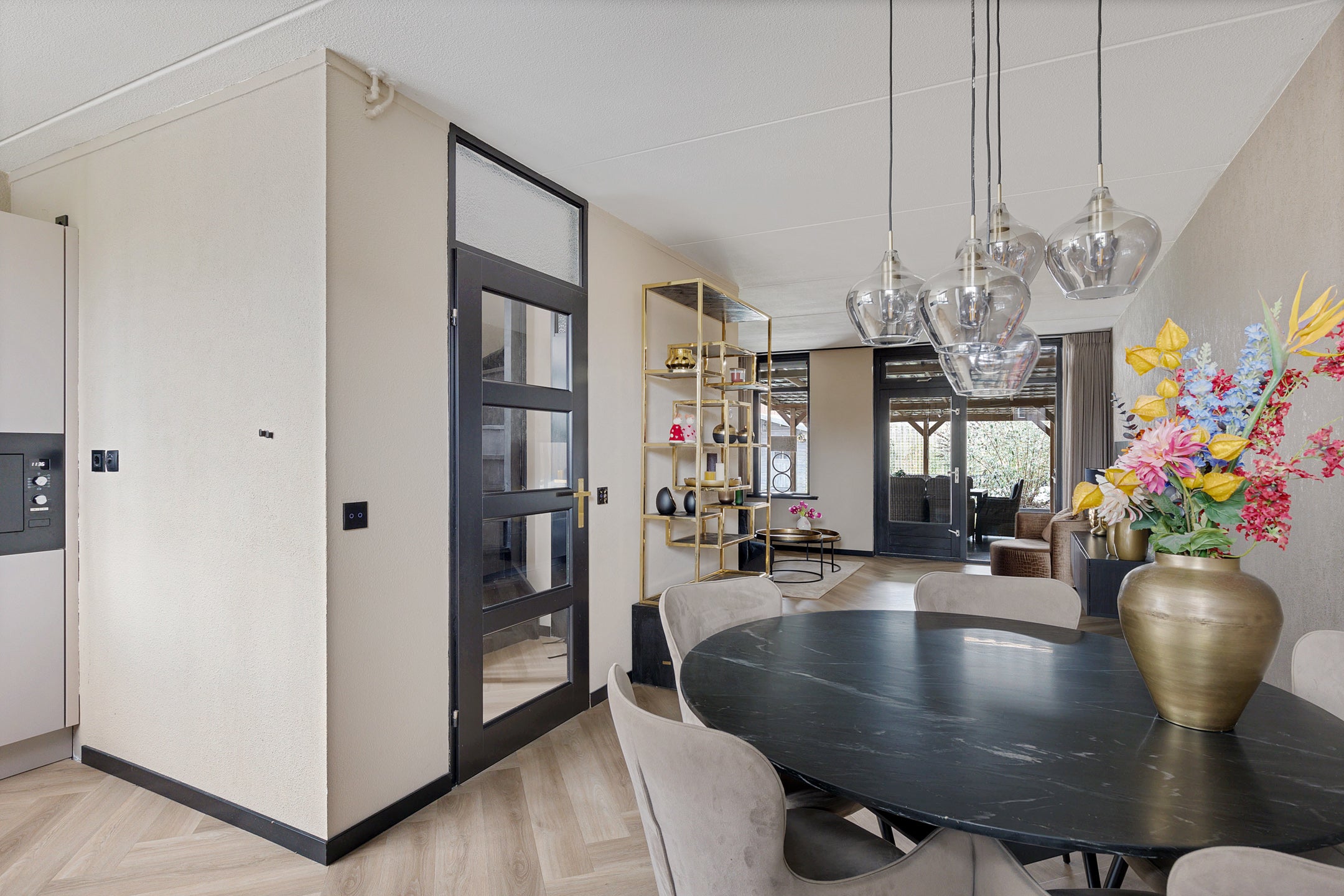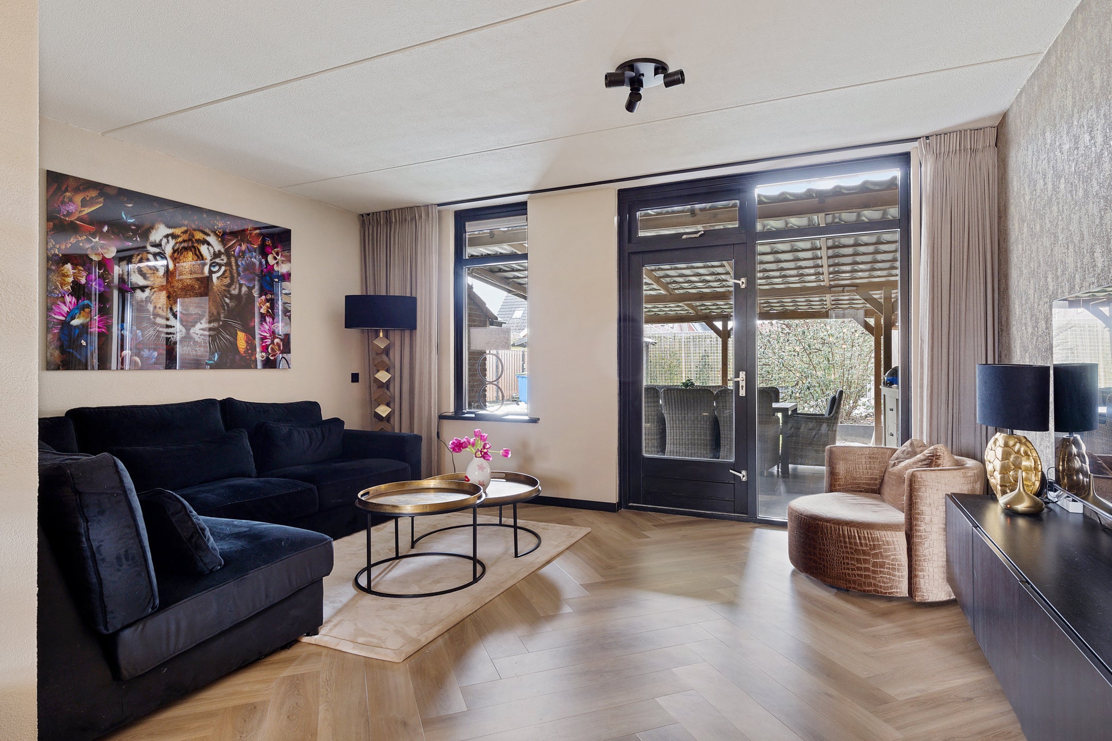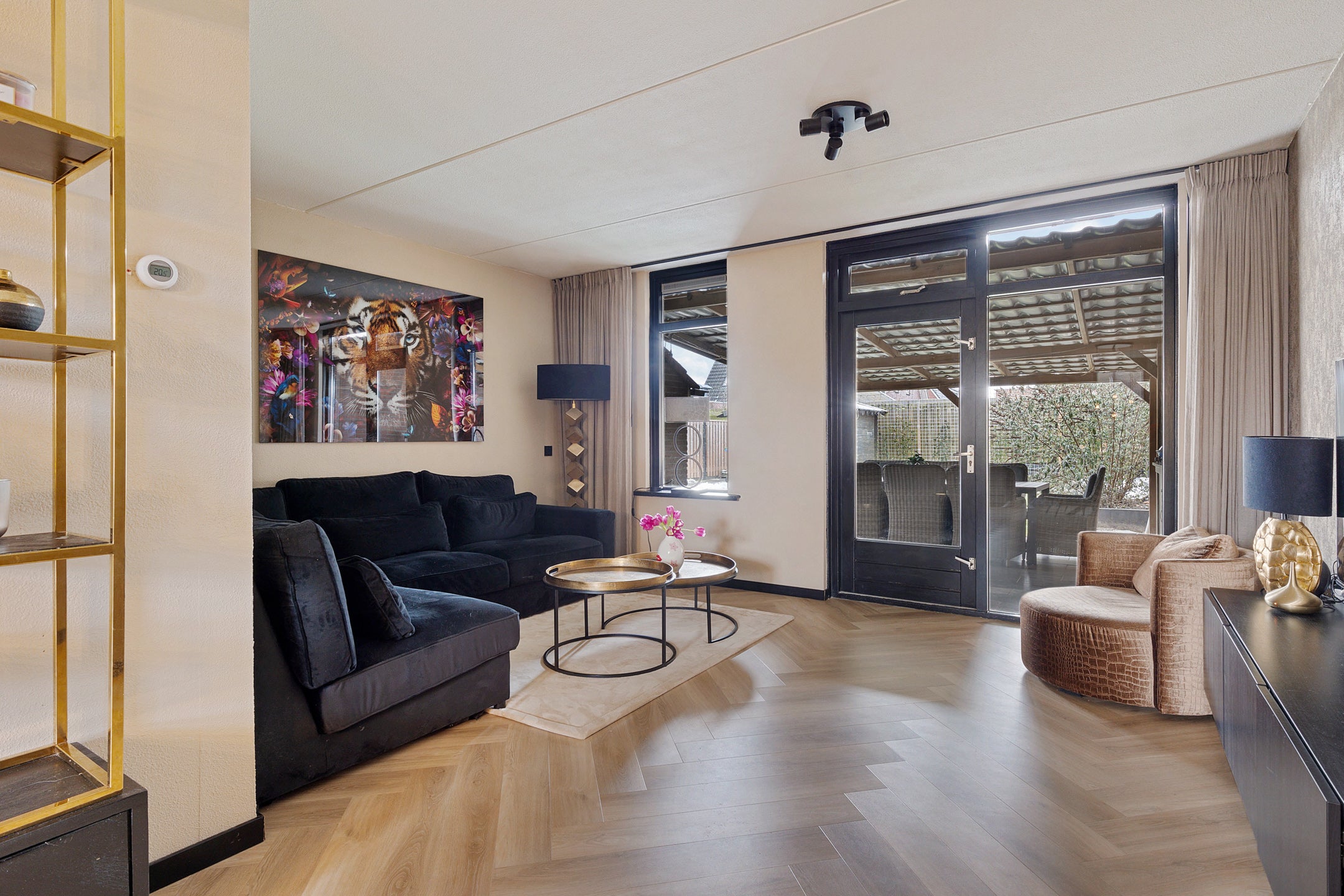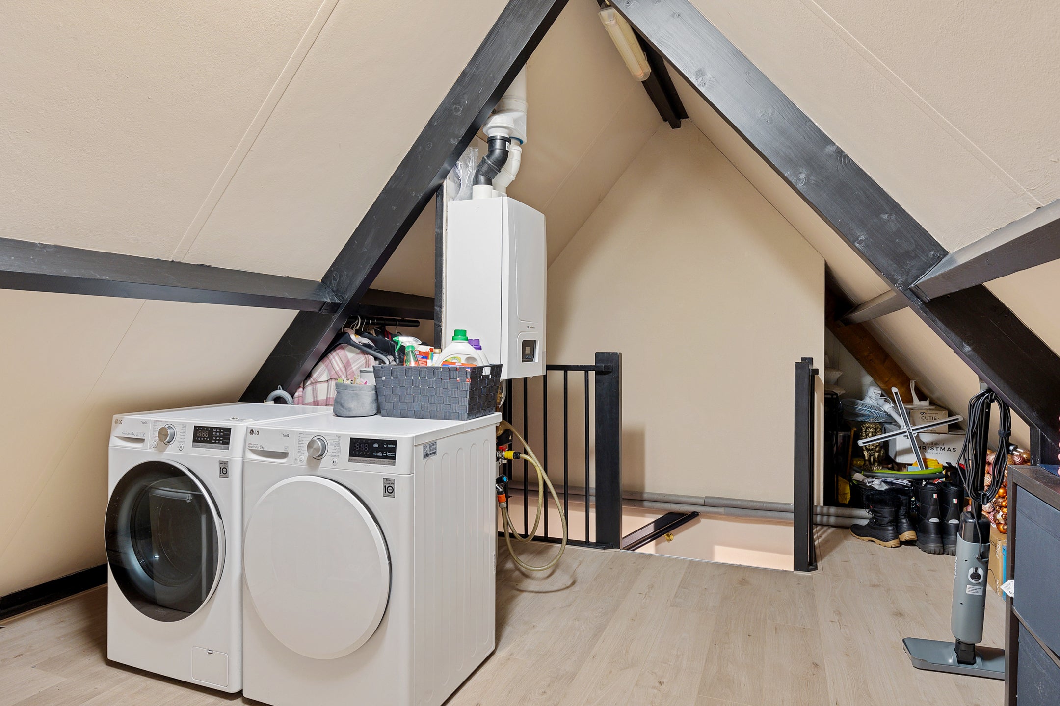 De indeling omvat een L-vormige woonkamer met open keuken en eetgedeelte van ca. 36 m². Op de eerste verdieping zijn er 3 slaapkamers (8 m², 11 m² en 16 m²) en een moderne badkamer met ligbad en douche. De zolder biedt ruimte voor een vierde slaapkamer. De achtertuin, met een oppervlakte van 120 m², is gericht op het zuidwesten en ideaal om te relaxen.