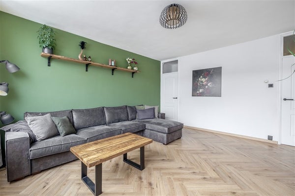 Woonkamer, 21 m², v.v. laminaatvloer (visgraat), zonnescherm en airco.