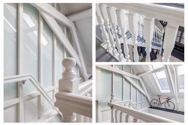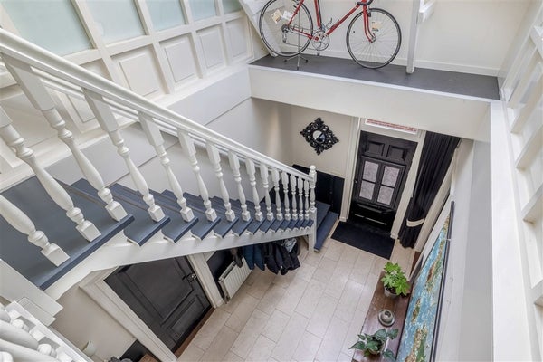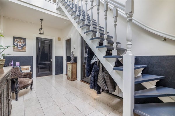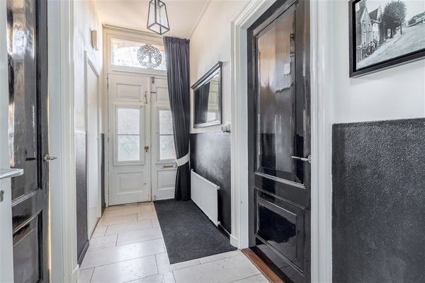 Zodra u binnenkomt via de entree met natuurstenen vloer en lambrisering, wordt u verwelkomd door een imposante hal met zij-entree en trapopgang. Dit is zo’n binnenkomst die meteen laat zien: dit huis is anders, dit huis heeft karakter. De speelse indeling, fraaie hoekjes en hoogwaardige afwerking geven de woning een warme, uitnodigende sfeer.