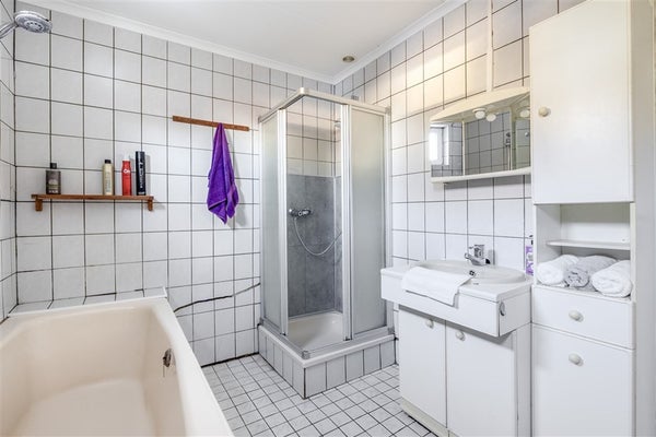 Badkamer, 7.2 m², v.v. ligbad, wastafel, douche en toilet.