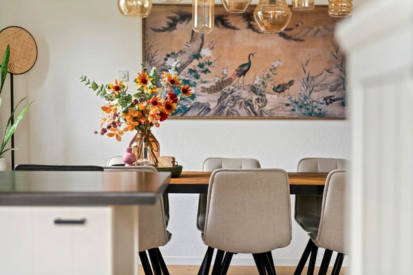 Vanuit de hal loop je door naar de ruime woonkamer, een comfortabele en gezellige leefruimte met volop mogelijkheden voor een fijne zithoek. Dankzij de prettige indeling is er daarnaast meer dan genoeg ruimte voor een royale eethoekopstelling, ideaal voor lange diners of gezellig tafelen met familie en vrienden. Tevens is de woonkamer voorzien van airconditioning (2025).