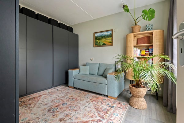 Op de begane grond is een extra (slaap)kamer aanwezig. Een praktische toevoeging voor wie een kantoor aan huis wil, een logeerruimte nodig heeft of de voorkeur geeft aan een slaapkamer op de begane grond.