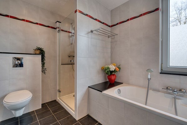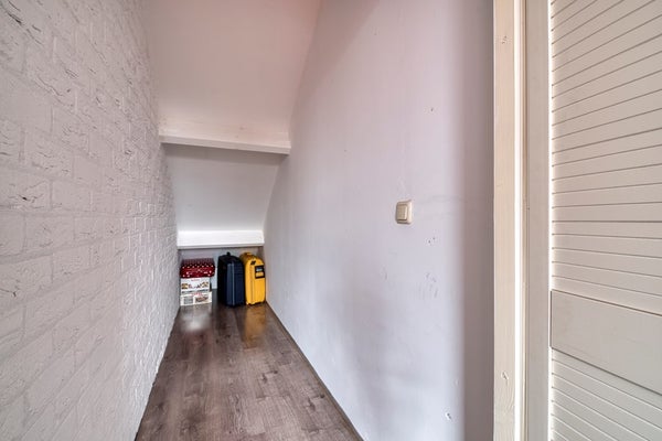 1e verdieping: De centrale overloop geeft toegang tot drie slaapkamers en de badkamer. Aan de achterzijde bevinden zich twee slaapkamers, waaronder de hoofdslaapkamer met een diepe inloopkast en extra bergzolder. Aan de voorzijde ligt de derde slaapkamer. De badkamer is compleet uitgevoerd en beschikt over een douchecabine, ligbad, toilet, dubbele wastafel met wastafelmeubel, designradiator en inbouwspots.