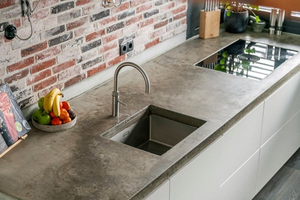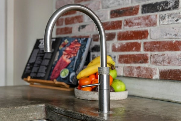 Vanuit de hal stap je de moderne keuken binnen, uitgevoerd in stijlvolle grijstinten en voorzien van een fraai betonwerkblad. De keuken is compleet uitgerust met diverse luxe inbouwapparatuur, waaronder een stoomoven, combi-oven, Quooker, inductiekookplaat met geïntegreerde afzuiging, een warmhoudlade, vaatwasser en een koelkast met vriezer. Een praktische en sfeervolle ruimte waar koken écht prettig wordt.