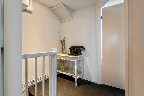 Via de vaste trap bereiken we de voorzolder. Vanuit hier zijn twee (slaap)kamers bereikbaar, waarvan één momenteel is ingericht als was-/kantoorruimte met de cv-ketel (Intergas Xtreme 36 CW5 2025) en de witgoedaansluitingen. Beide kamers zijn uitgevoerd met een dakkapel, wat zorgt voor veel licht en een ruimtelijk gevoel. Daarnaast is er extra bergruimte aanwezig op de vliering en achter de knieschotten.