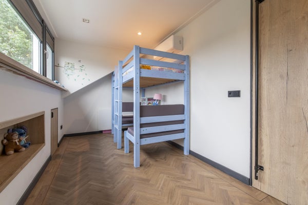 - De tussenwoning heeft een woonoppervlakte van 124 m² en beschikt over 6 kamers, waarvan 5 slaapkamers;