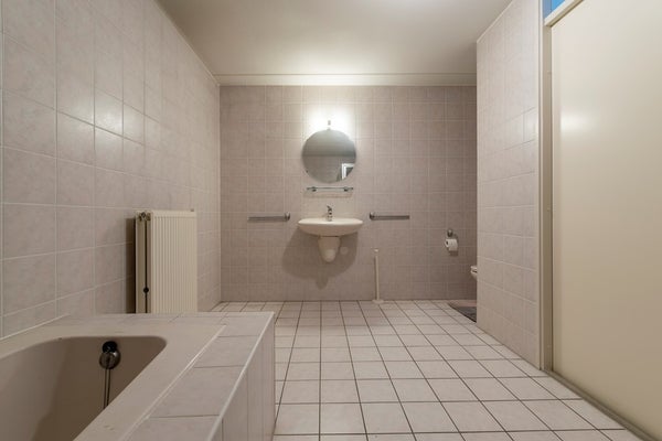 1e Verdieping: De overloop geeft toegang tot de pandbrede slaapkamer aan de voorzijde van de woning. In deze slaapkamer ruimte in overvloed voor het plaatsen van een (vaste) kastenwand of iets dergelijks. Aan de achterzijde bevindt zich nog een slaapkamer. Voorheen waren dit twee slaapkamers. Deze slaapkamer geeft toegang tot het dakterras. Ideaal om bijvoorbeeld de was te drogen. Door deze samenvoeging is ook de badkamer vergroot waardoor deze beschikt over een ligbad, een douchecabine, een toilet en een wastafel. En een zee aan ruimte niet te vergeten.