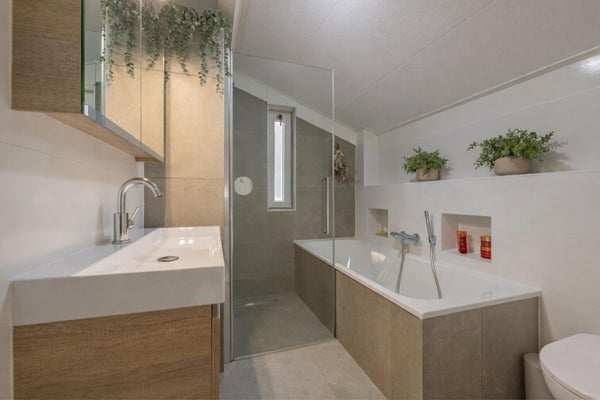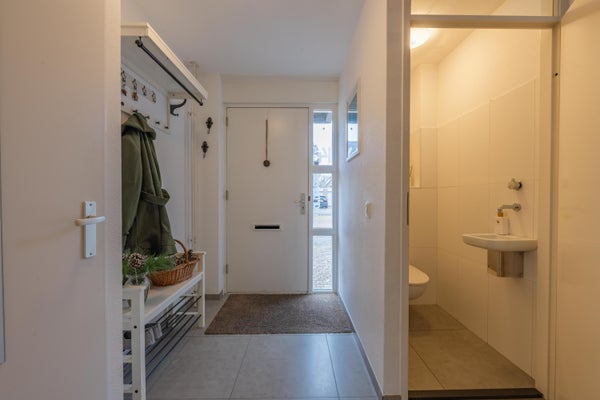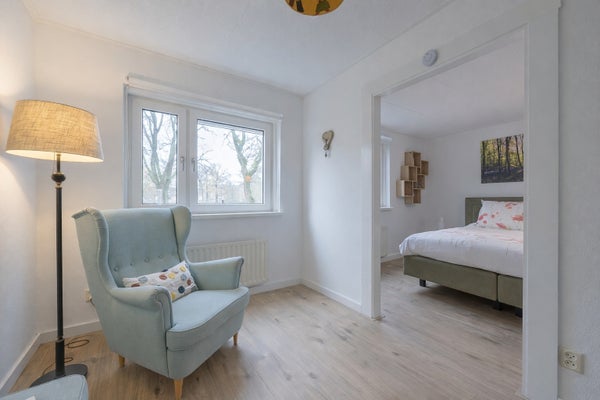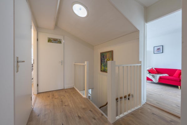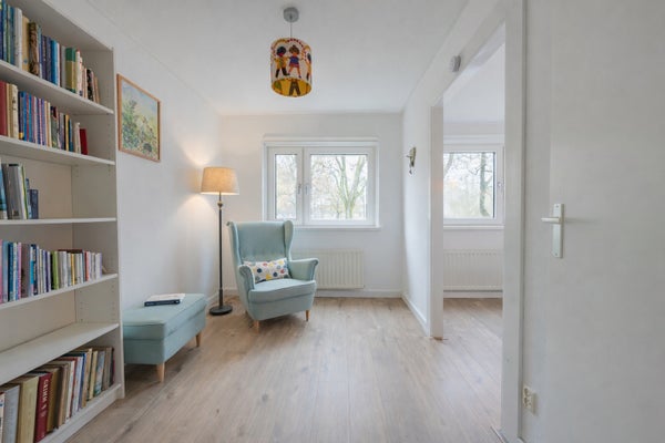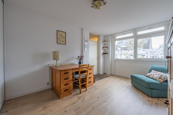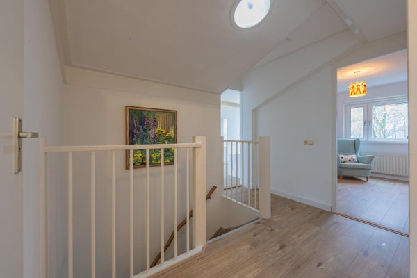 Op de eerste verdieping zijn er drie slaapkamers, met mogelijkheden voor een vierde. De badkamer, vernieuwd in 2022, is uitgerust met een ligbad en inloopdouche. De verzorgde tuin op het zuidoosten biedt een veranda en een houten berging. Parkeren kan op eigen terrein en de locatie nabij scholen en natuur maakt het tot een ideale plek om te wonen.