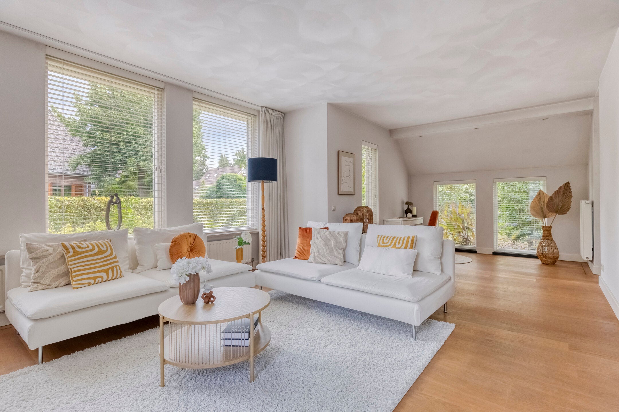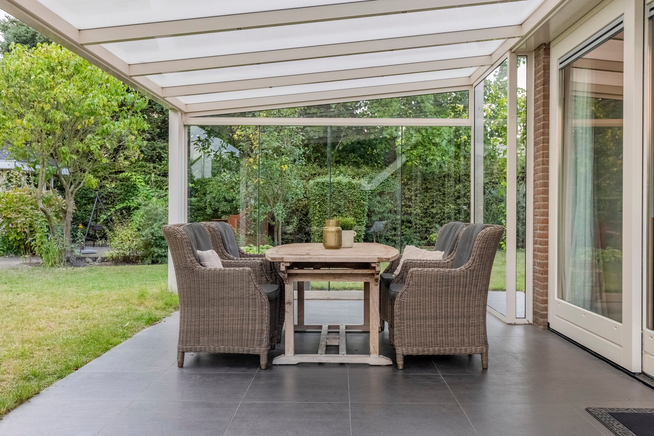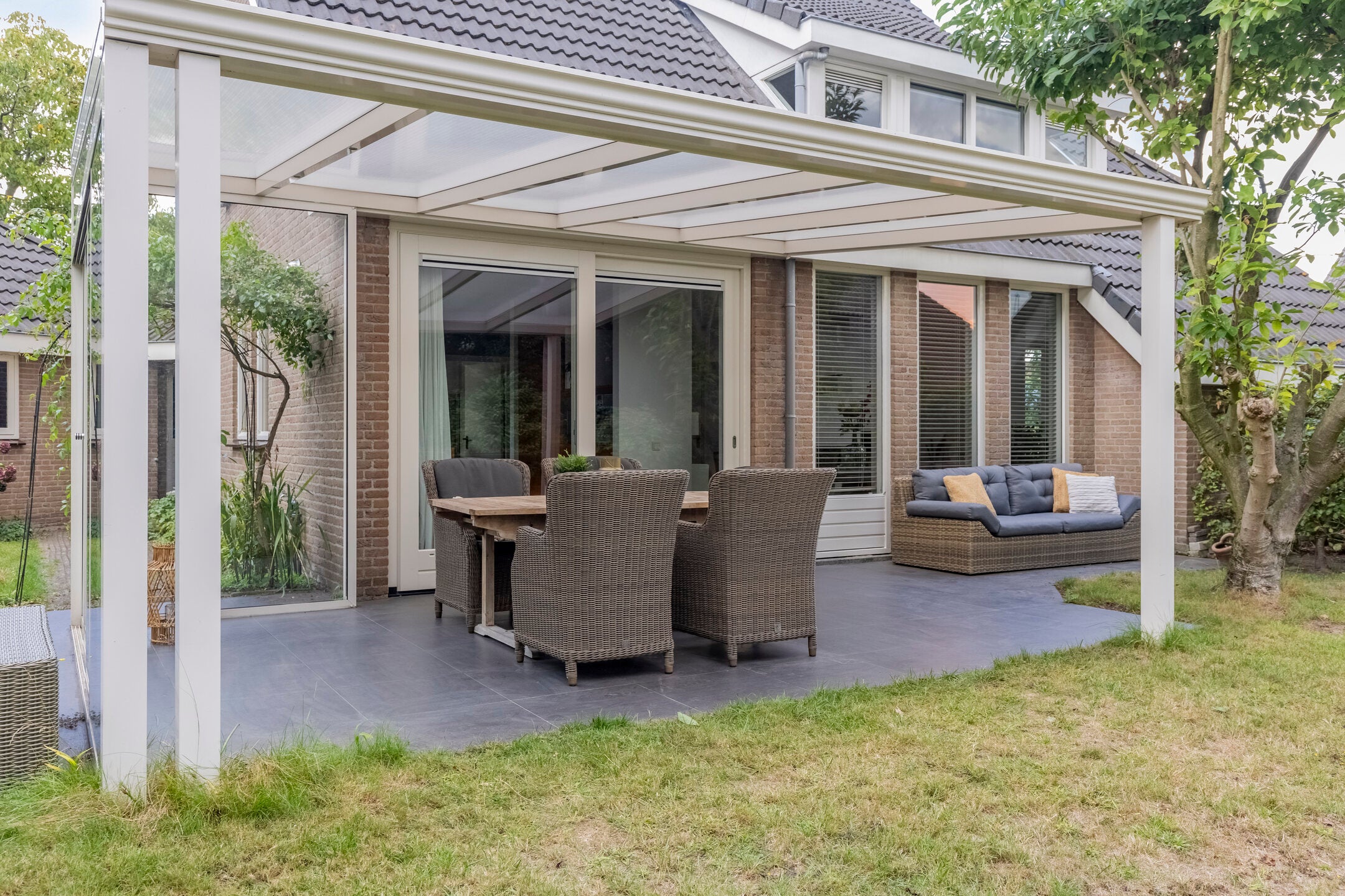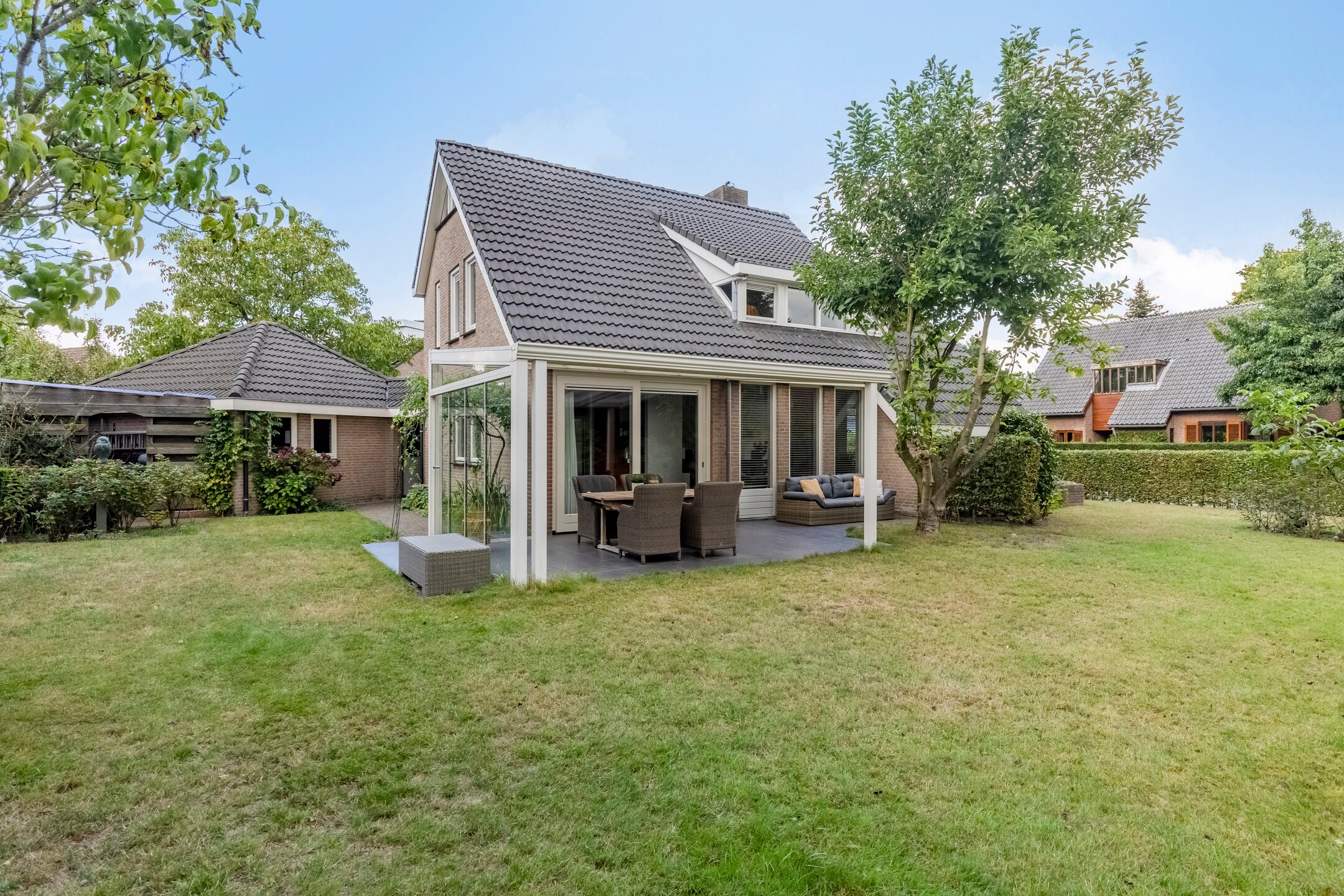 De tuin biedt privacy en heeft meerdere terrassen en een tuinhuisje. De garage is geschikt voor twee auto's, en er is voldoende parkeerruimte op eigen terrein. Een ideale woning voor een gezin.