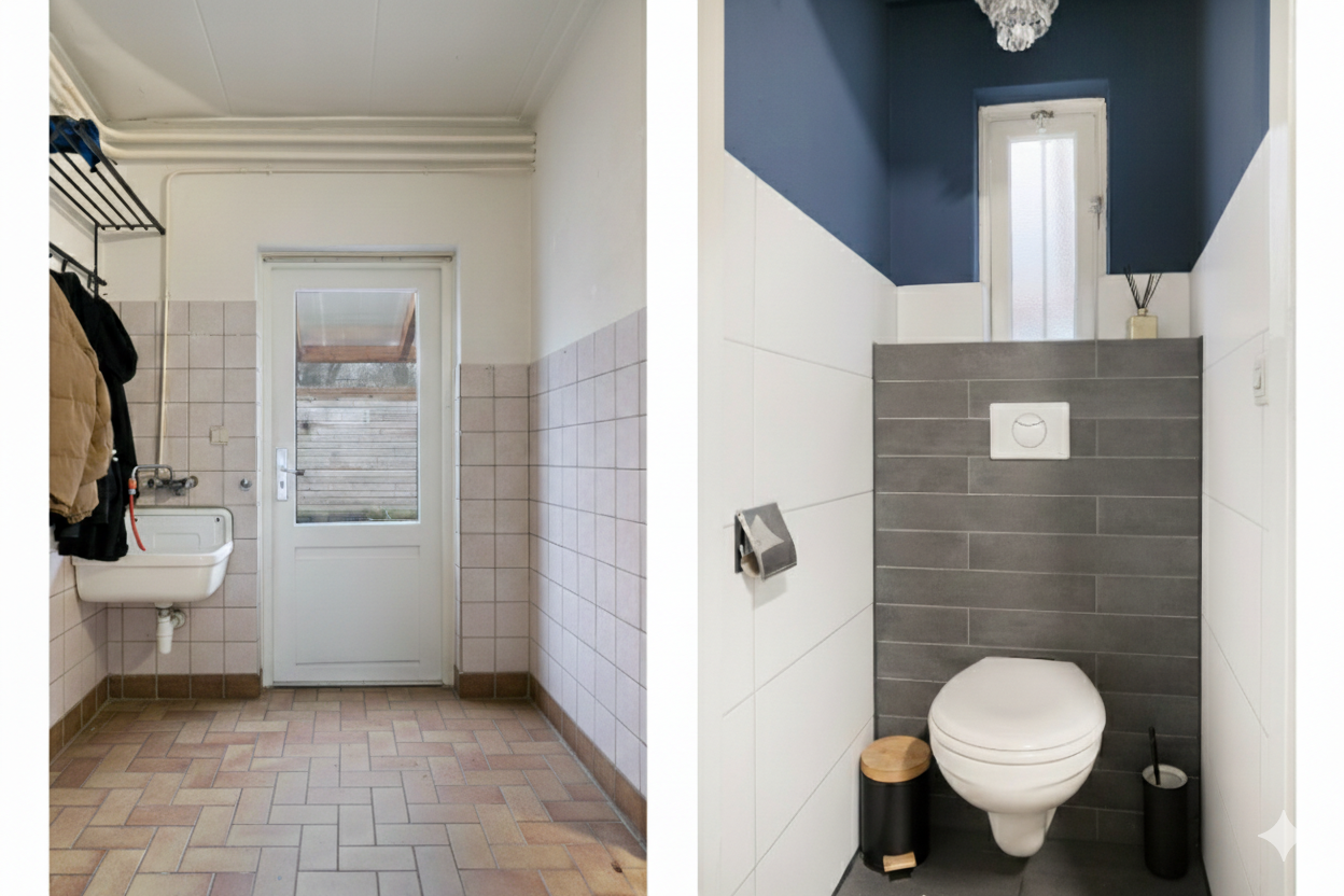 Rembrandtlaan 21 in Veghel is een vooroorlogse twee-onder-een-kapwoning uit 1939, met een woonoppervlakte van circa 114 m². Dit huis heeft drie slaapkamers en een achtertuin met een overkapping en schuur, wat het ideaal maakt voor een nieuwe start. De begane grond is sfeervol met gestucte wanden, een laminaatvloer en een karakteristiek balkenplafond. De vernieuwde keuken biedt inbouwapparatuur zoals een koelkast en vaatwasser. De eerste verdieping heeft een moderne badkamer en een extra kleine kamer. De achtertuin is onderhoudsvriendelijk, met een vijver en handige achterom. Veghel is een levendige plaats met voorzieningen dichtbij, en de woning biedt goede bereikbaarheid. Deze opknapper biedt veel potentie voor wie zijn eigen stempel wil drukken.