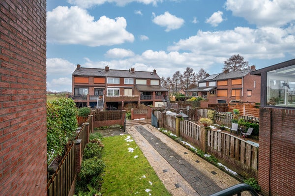 In een rustig zijstraatje aan de rand van Velden staat deze keurig onderhouden tussenwoning. Vanaf de voorkant kijk je uit over de weilanden. De woning, gebouwd in 1968, is volledig onderkelderd en biedt veel praktische ruimte, verdeeld over drie kelderruimtes. Op de begane grond vind je de hal die leidt naar een halfopen keuken, een toilet en de woonkamer met grote ramen en een schouw. De verdieping heeft drie slaapkamers van respectievelijk circa 6, 12 en 13,5 m², evenals een badkamer met ligbad, toilet en wastafel. De tuin is bereikbaar via de keuken en kelder, met volop mogelijkheden om buiten te zitten. Met een woonoppervlakte van 87 m² op een perceel van 162 m², is dit een comfortabele plek.