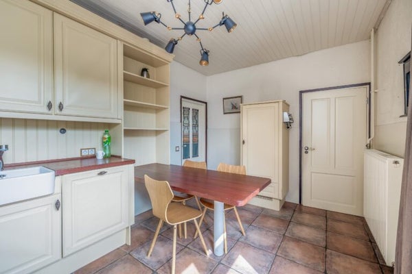 Deze halfvrijstaande woning biedt royale leefruimte en een diepe, groene achtertuin. Met een ruime woonkamer van ca. 50 m², een carport en meerdere slaapkamers is er volop ruimte voor gezinsleven. Op de begane grond bevindt zich een extra kamer (ca. 10 m²) ideaal voor een kantoor of speelkamer. De keuken van ca. 14 m² heeft toegang tot de tuin en een bijkeuken met witgoedaansluiting. Boven zijn vier slaapkamers (11,5 m² tot 21,5 m²) en een badkamer (ca. 7 m²) met vloerverwarming. De tuin is meer dan 60 meter diep, biedt privacy en heeft een houten tuinhuis (ca. 12,5 m²) met elektra. Deze woning, gebouwd in 1936, heeft een woonoppervlakte van 238 m² en staat in Velden, nabij de dorpskern.
