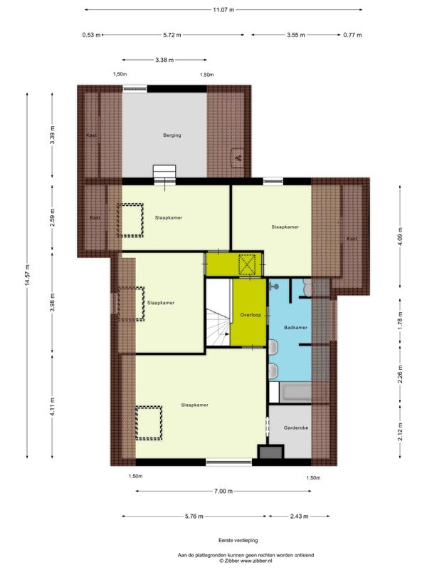 - De tussenwoning heeft een woonoppervlakte van 193 m² en beschikt over 7 kamers, waarvan 4 slaapkamers;