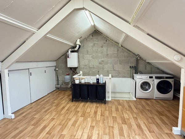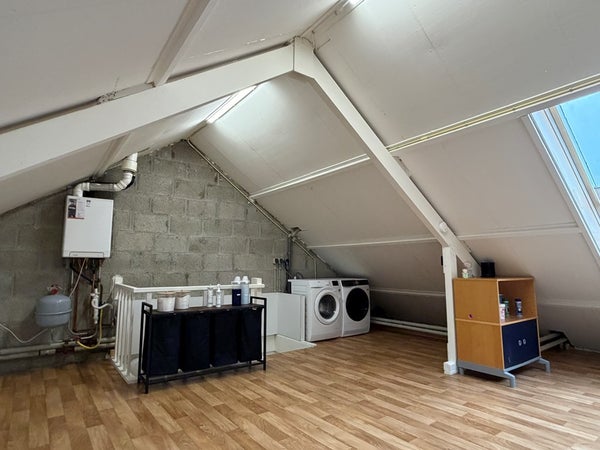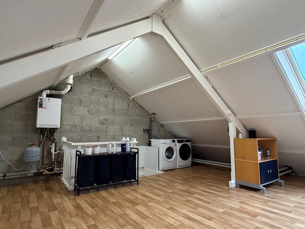 • Via een vaste trap is de tweede verdieping bereikbaar. De ruime zolder is voorzien van kastruimte en een dakraam en is uitstekend te gebruiken als vierde slaapkamer, werk- of hobbyruimte. Op deze verdieping bevindt zich tevens de aansluiting voor de wasmachine.