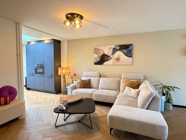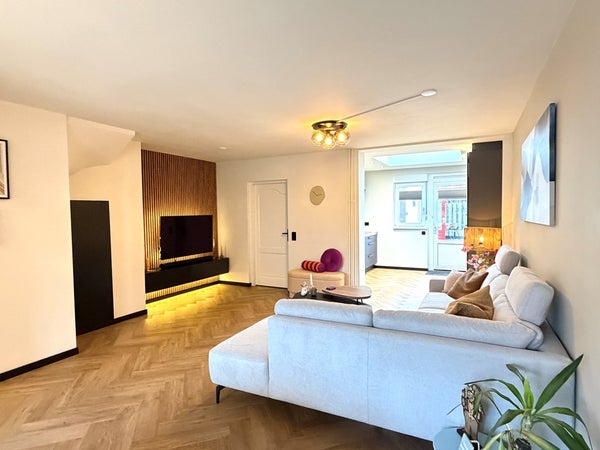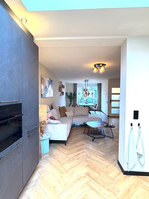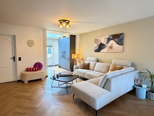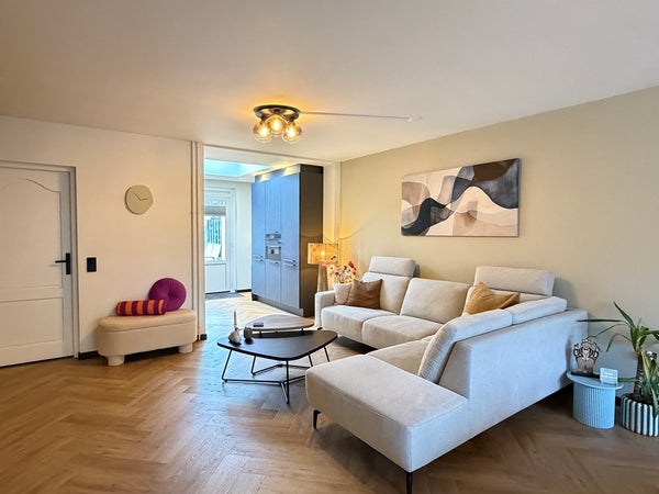 Via de hal met meterkast en een mooi gerenoveerd toilet kom je in de ruime woonkamer met PVC vloer met vloerverwarming. Door de uitbouw is hier een fijne leefruimte ontstaan met veel licht en comfort. De open keuken is voorzien van een moderne inbouwcombinatie (bouwjaar 2025) inclusief inbouwapparatuur.