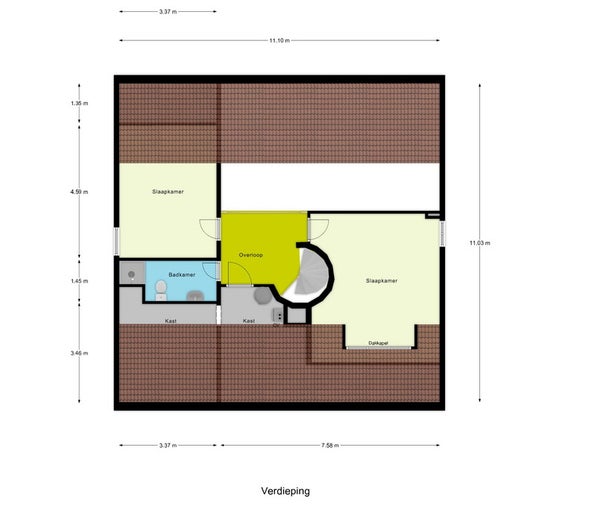 - De tussenwoning heeft een woonoppervlakte van 171 m² en beschikt over 5 kamers, waarvan 3 slaapkamers;