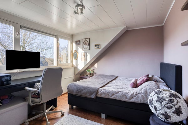 - De tussenwoning heeft een woonoppervlakte van 126 m² en beschikt over 6 kamers, waarvan 5 slaapkamers;