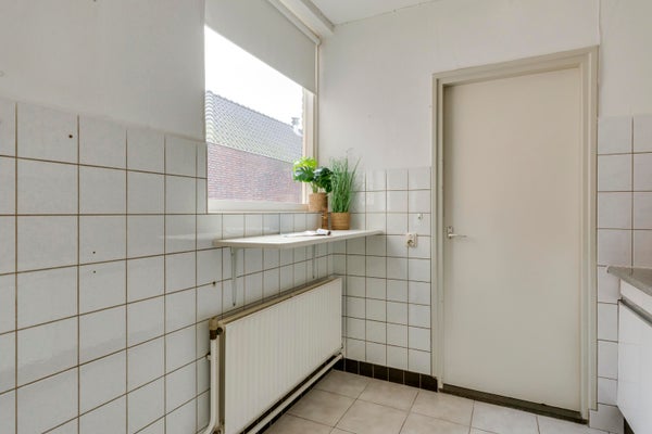 Gelegen aan een rustige woonstraat in Veldhoven-Dorp, nabij de Kromstraat, biedt deze 2-onder-1-kapwoning op Pastoor Verhoevenstraat 6A veel potentie. Met een mogelijkheid tot uitbouw en een diepe zonnige tuin van 30 meter op het zuidwesten, kan deze woning een echt thuis worden. Er is een eigen oprit met parkeerruimte en een verzorgd aangelegde voortuin. Binnenkomst in de hal met natuurstenen tegelvloer leidt naar een lichte woonkamer met houten vloer en grote ramen. De keuken, bereikbaar vanuit de hal en woonkamer, heeft een gasfornuis en toegang tot een bijkeuken met aansluitingen voor wasmachine en droger. Op de verdieping bevinden zich drie slaapkamers en de badkamer, compleet met douche en wastafel. De tuin, bereikbaar via een achterom, biedt ruimte voor zonneterrassen en speeltuinen.