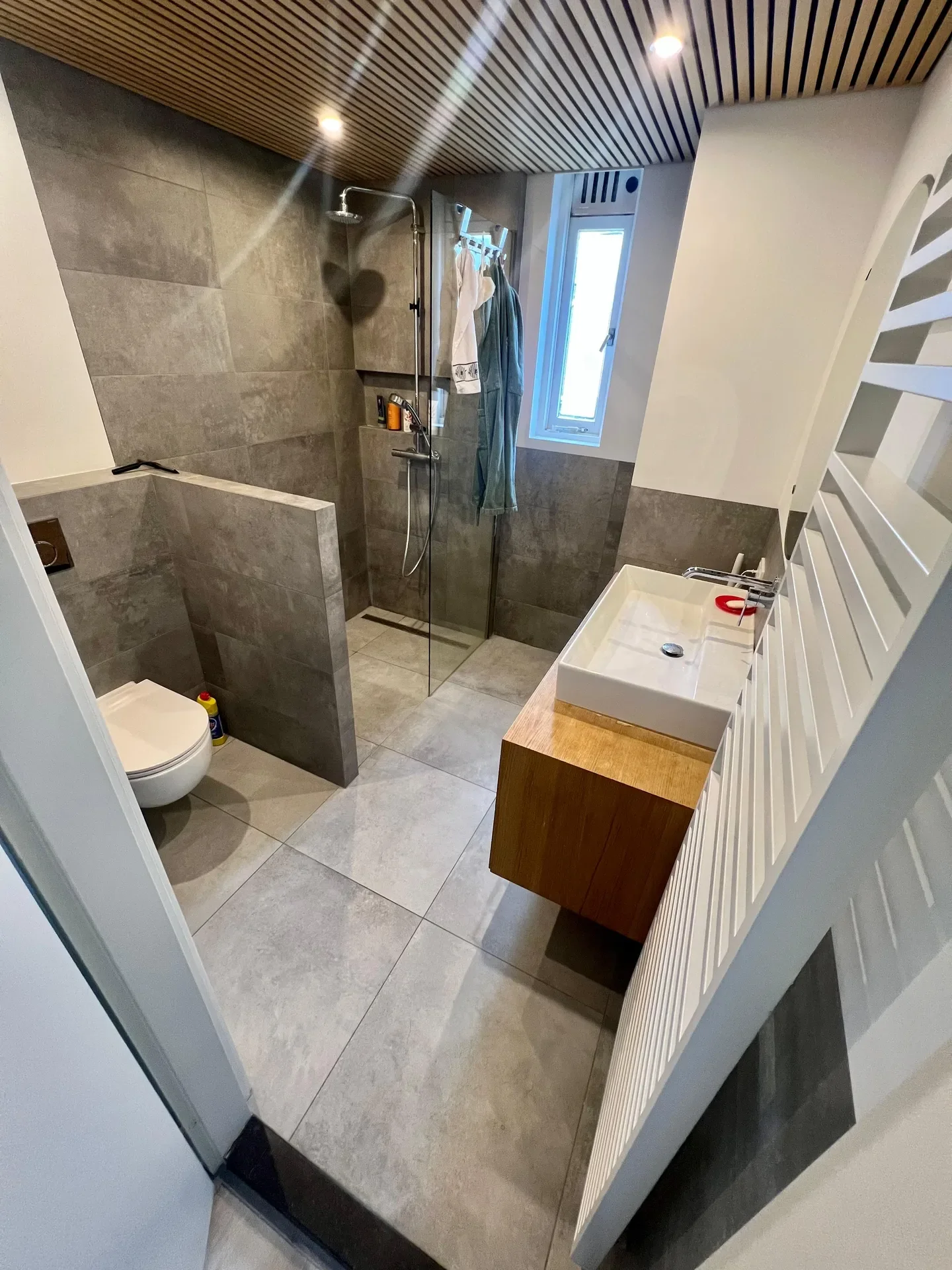 Op de eerste verdieping zijn drie slaapkamers en een luxe badkamer met inloopdouche. De tweede verdieping bevat een ruime zolderkamer met aansluitingen voor wasmachine en droger. Het huis is goed geïsoleerd met HR++ glas en biedt veel ruimte en comfort.