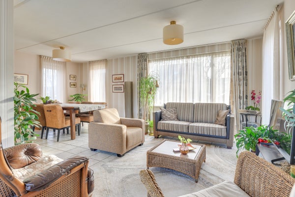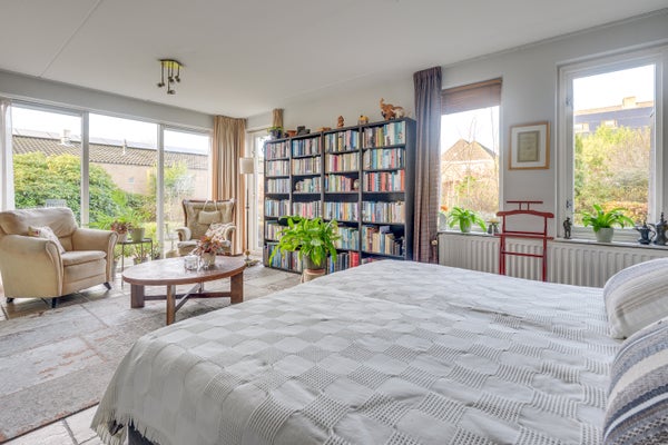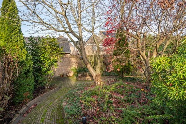 Buiten vindt u een prachtig aangelegde tuin met Japanse kersenbomen en comfortabele zitplekken. De rechterzijde van de woning biedt een zelfstandige woonvleugel met extra slaapkamers en een moderne badkamer. Deze woning is centraal gelegen, met snelle toegang tot scholen, winkels en uitvalswegen.