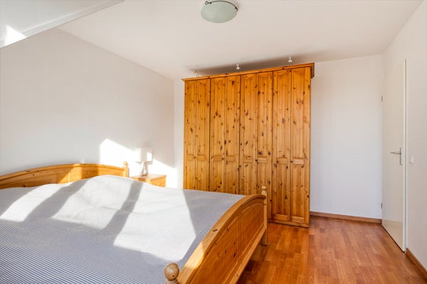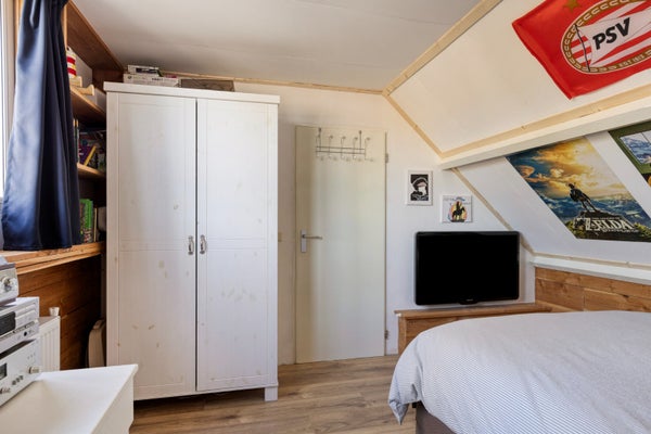 De zolderverdieping is ingericht als vierde slaapkamer en beschikt over extra bergruimte achter de knieschotten.