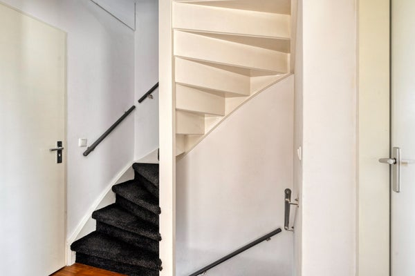 Bij binnenkomst via de voordeur betreedt u de verzorgde entreehal. Hier vindt u de meterkast, voorzien van vijf groepen, twee aardlekschakelaars en een glasvezelaansluiting. Daarnaast bevindt zich in de hal de deels betegelde toiletruimte met staand toilet en fonteintje. De hal biedt toegang tot de lichte woonkamer met open keuken.