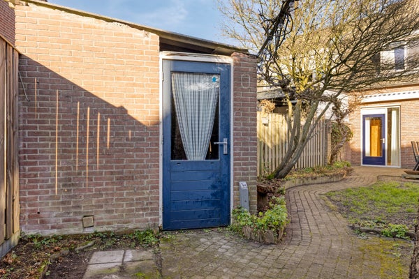 De tuin is volledig omheind en beschikt over een achterom. Achterin de tuin bevindt zich een stenen berging, voorzien van elektra.