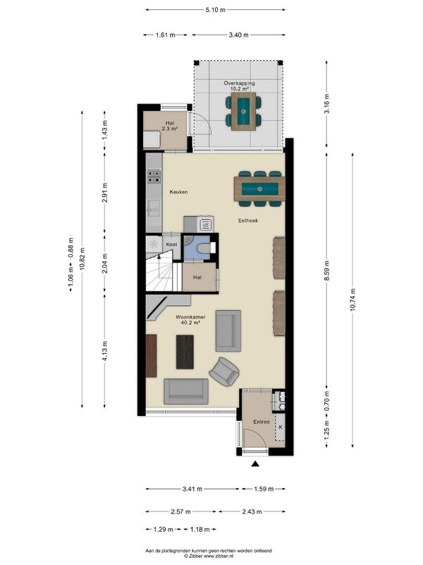 - De tussenwoning heeft een woonoppervlakte van 100 m² en beschikt over 5 kamers, waarvan 4 slaapkamers;