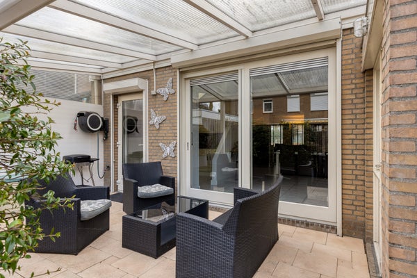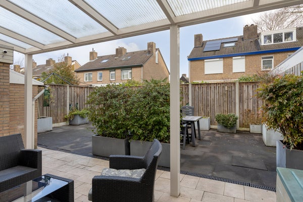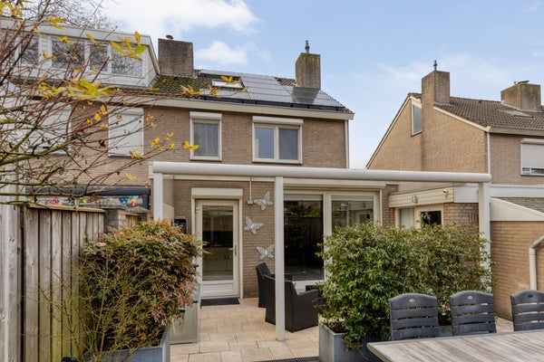De onderhoudsvrije achtertuin ligt op het noordoosten en er is een inpandige garage met carport. De woning is uitgerust met zonnepanelen, vloerverwarming en energieklasse A.