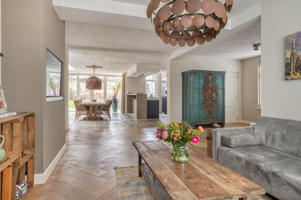 In het centrale Veldhoven Dorp ligt dit vrijstaande, gemoderniseerde woonhuis met een diepe tuin op een perceel van 795 m². De woning heeft opritten aan beide zijden voor gemakkelijk parkeren en bevindt zich dicht bij winkels, scholen en ASML. De begane grond heeft een royale L-vormige woonkamer met een eet- en woonkeuken. De keuken is volledig uitgerust met moderne apparatuur en een sfeervolle stenen vloer. De bijkeuken biedt extra opslagruimte en heeft toegang tot de tuin.
