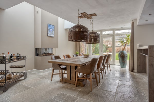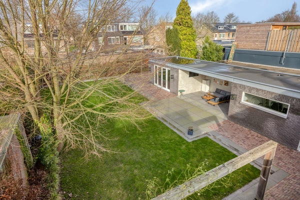 Op de eerste verdieping zijn vier slaapkamers en twee badkamers, waarvan één en suite met onder andere een dubbele inloopdouche. De diepe achtertuin is ontworpen voor privacy en heeft een bijgebouw met tuinhuis en garage.