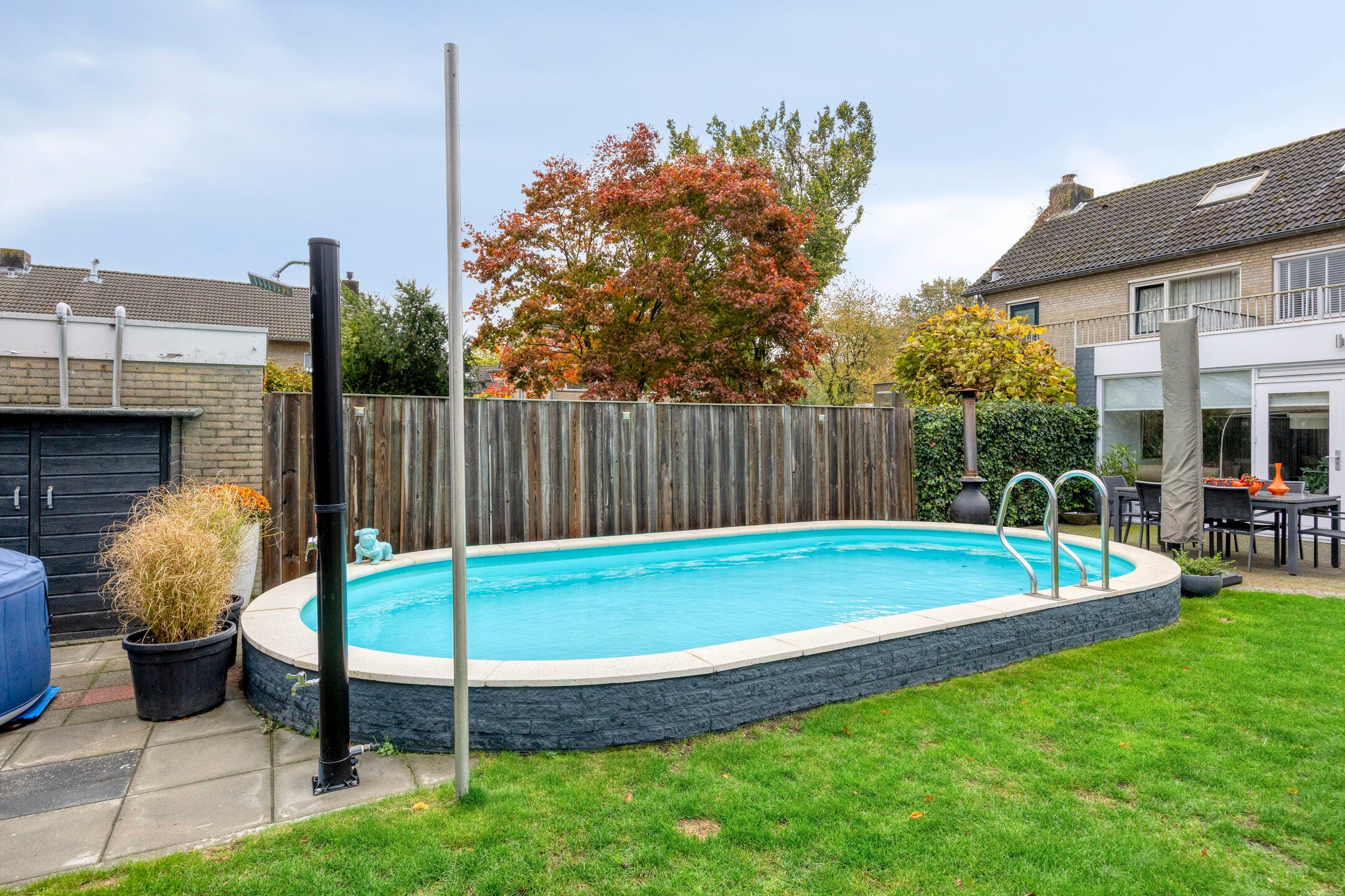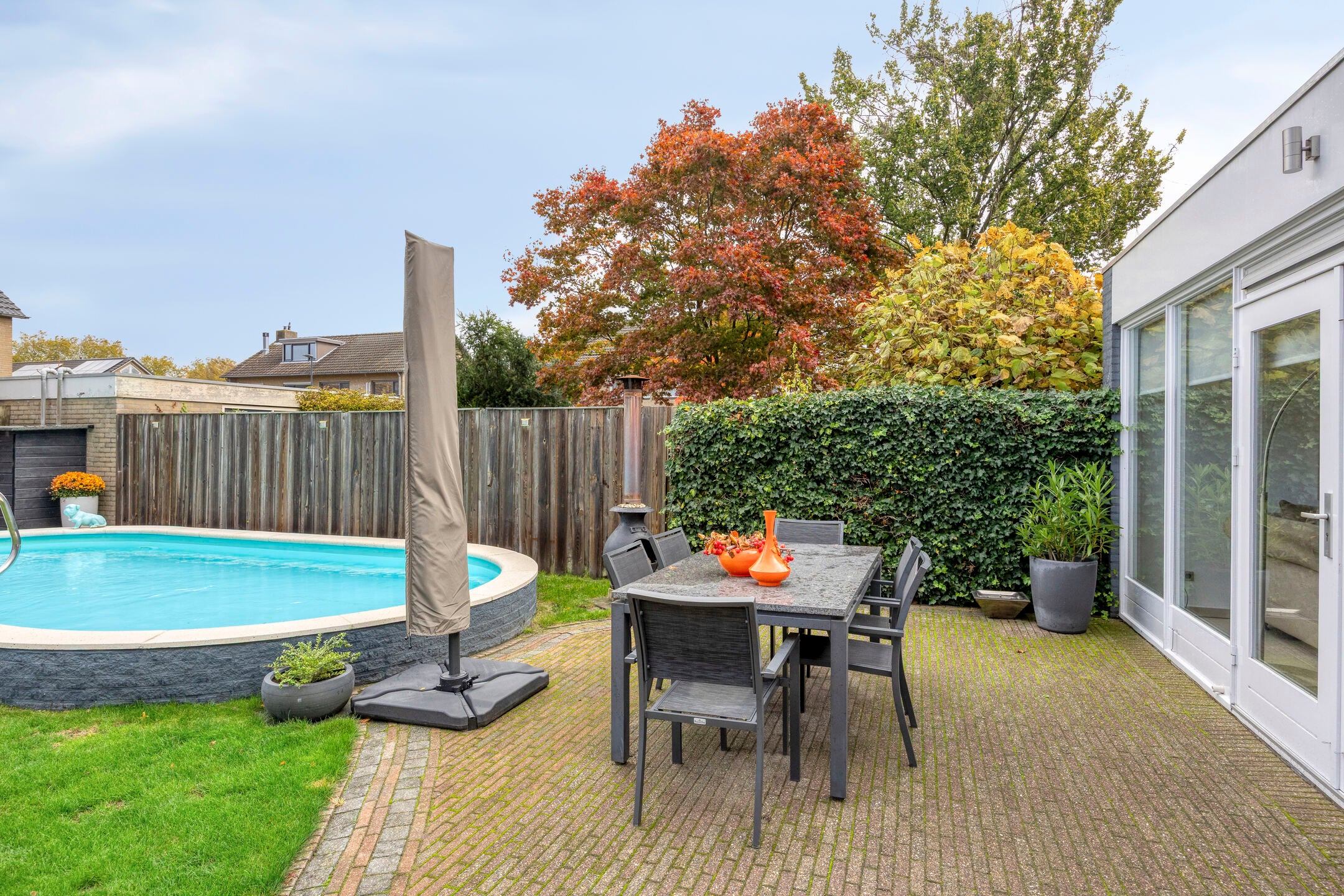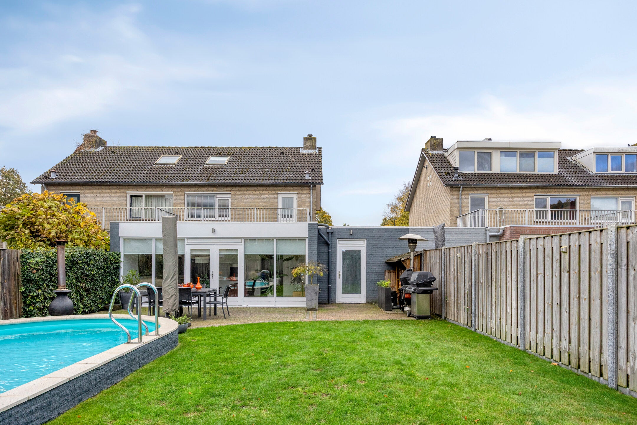 Deze sfeervolle, uitgebouwde twee-onder-een-kapwoning met garage en verwarmd zwembad ligt op een perceel van 339 m², tegenover park Vogelenzang. De woning heeft vier slaapkamers en is dicht bij scholen, openbaar vervoer en winkels. De indeling op de begane grond biedt een ruime L-vormige woonkamer met een open haard, een eetkamer en een halfopen keuken met inbouwapparatuur zoals een vaatwasser en combi-oven. De uitbreiding aan de achterzijde creëert een lichte tuinkamer met openslaande deuren naar de zonnige achtertuin met zwembad en terras. De eerste verdieping heeft drie slaapkamers en een badkamer met ligbad. De tweede verdieping biedt een royale vierde slaapkamer. De garage beschikt over elektra en aansluitingen voor wasapparatuur. Een ideale gezinswoning met ruimte en comfort.