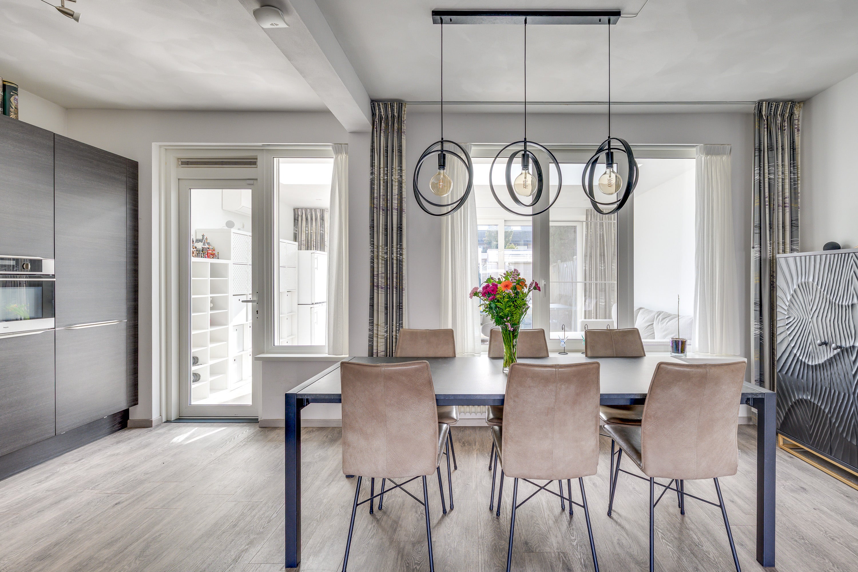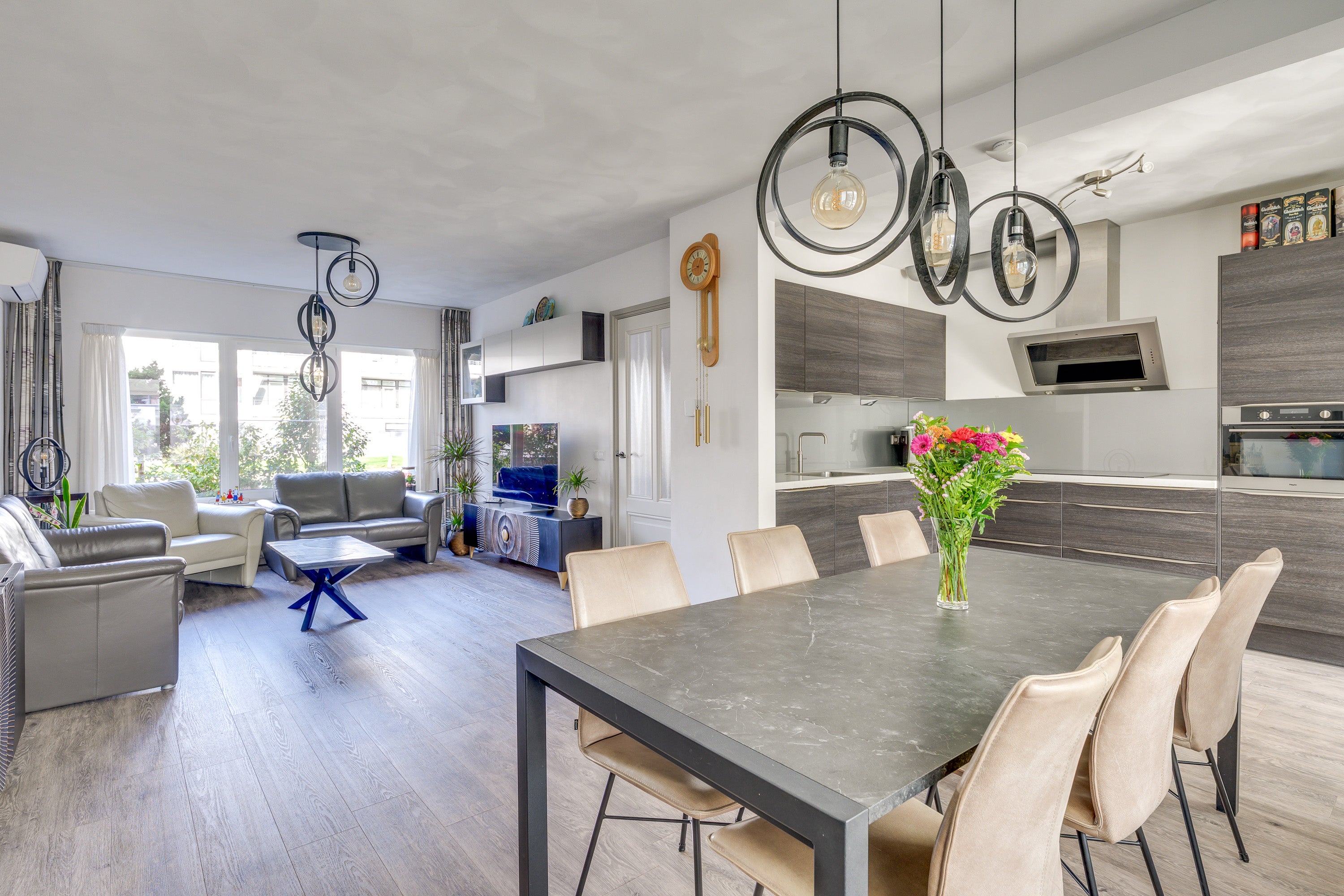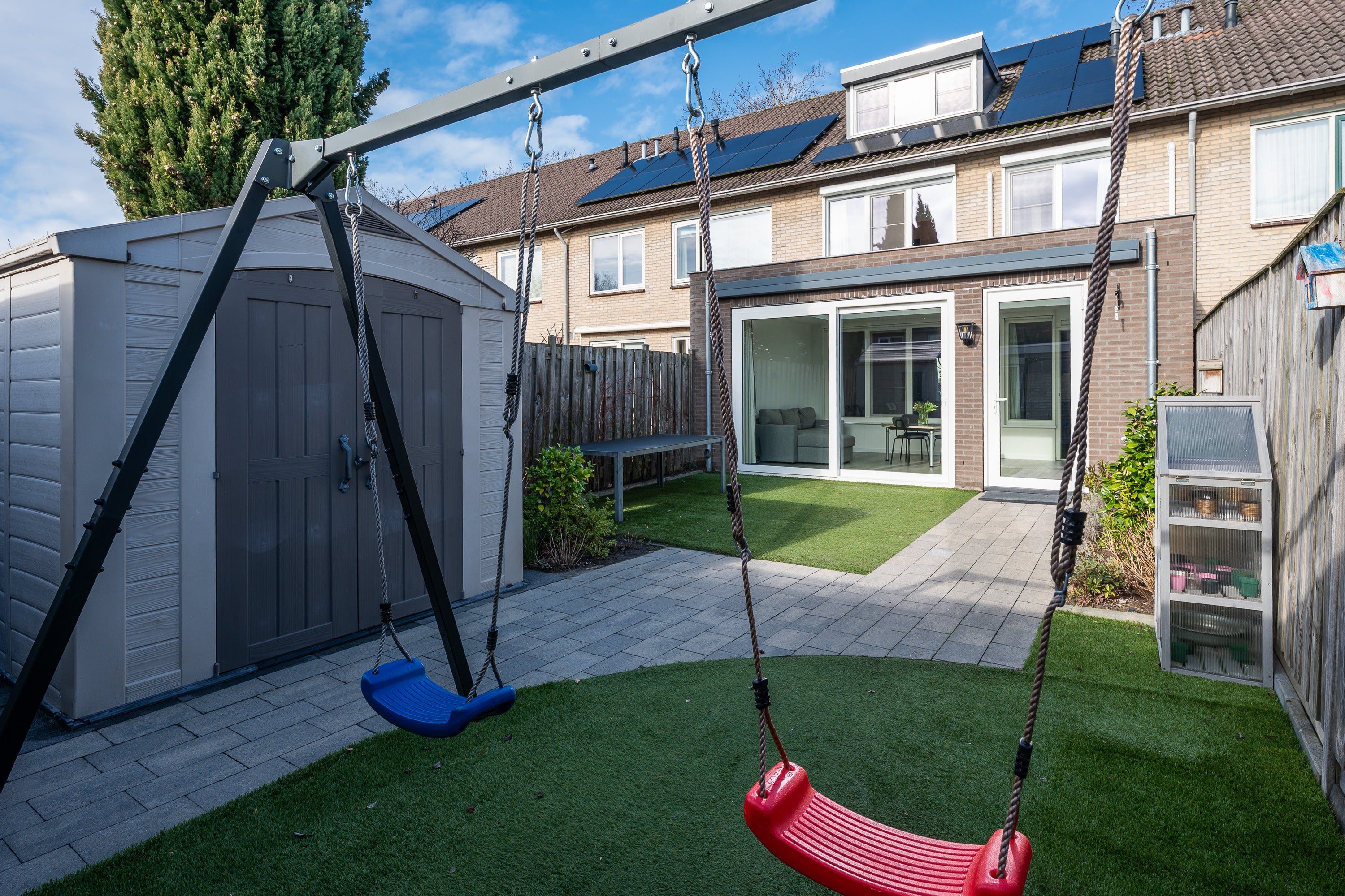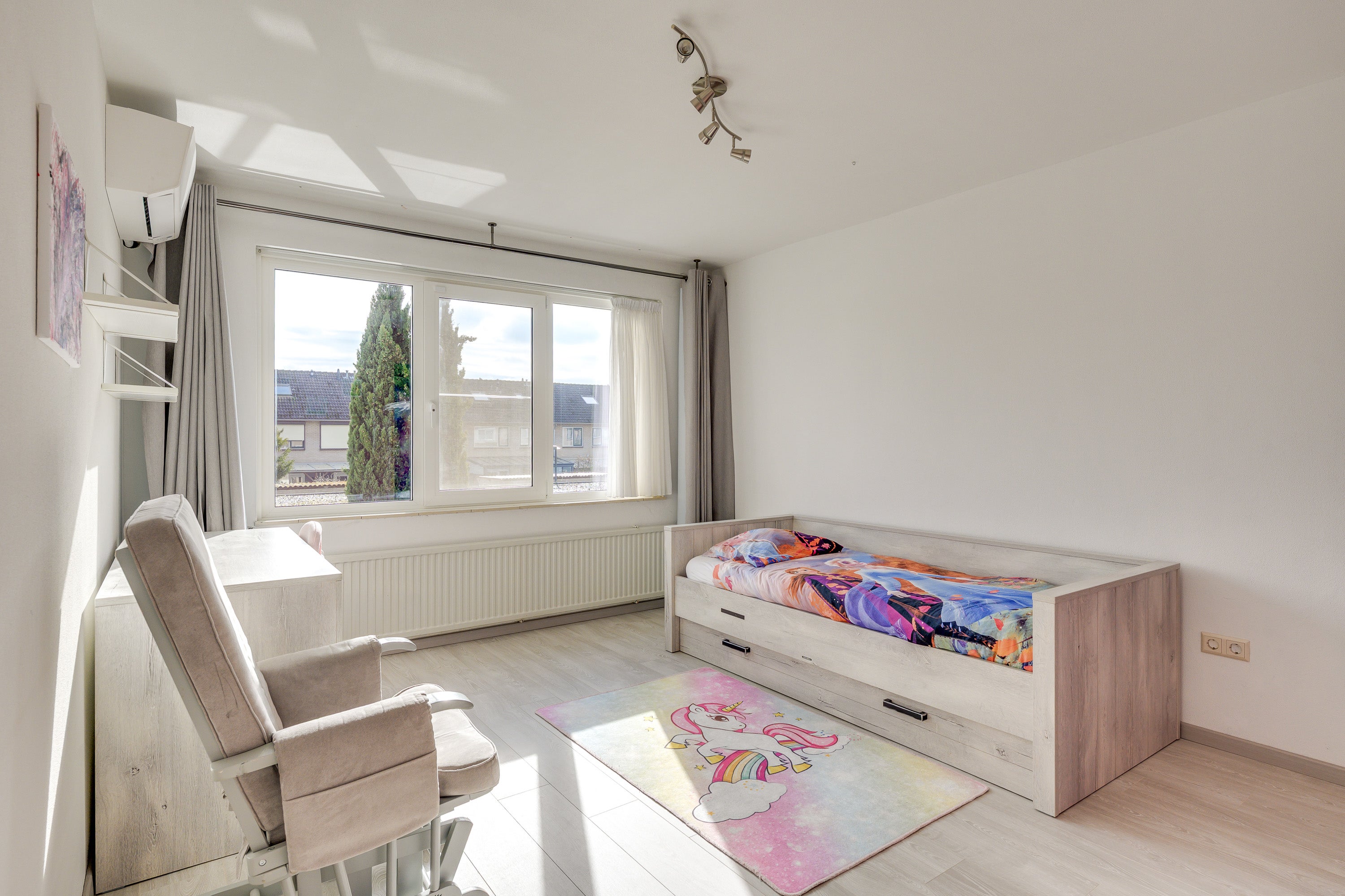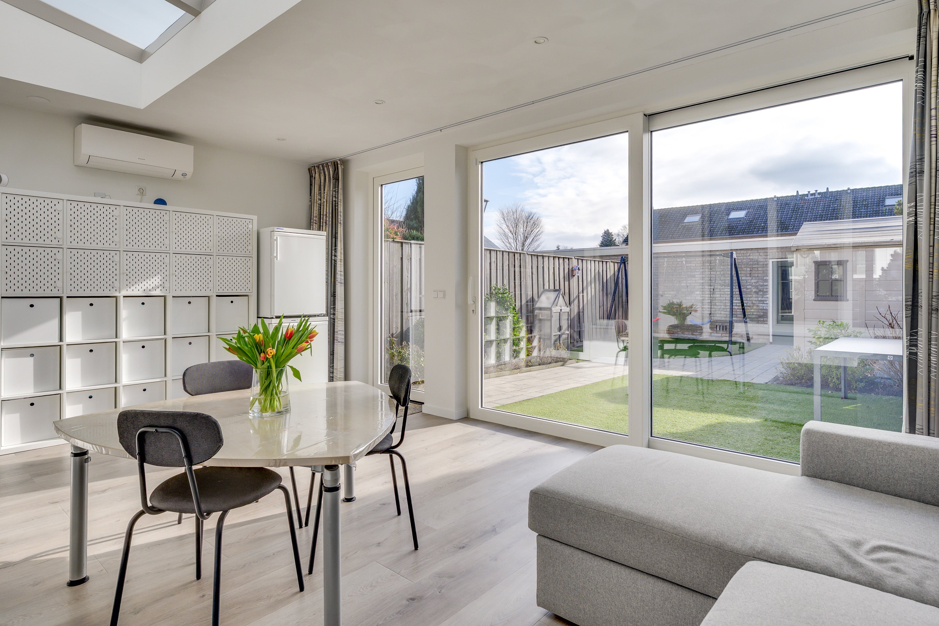 In de groene wijk 't Look staat deze uitgebouwde, instapklare woning met energielabel B. Met vier slaapkamers, een garage en een zonnige tuin op het zuiden biedt het huis ruimte en comfort. Het pad leidt naar de verzorgde voortuin en de overdekte entree, waar u binnenkomt in een nette hal met PVC-vloer. De ruime living geniet van natuurlijk licht door grote ramen en is uitgerust met airconditioning. De moderne open keuken, vernieuwd in 2015, bevat een 6-pits inductiekookplaat en een Miele vaatwasser. In 2024 is de woning uitgebreid met een multifunctionele ruimte, ideaal voor diverse doeleinden. De eerste verdieping heeft drie slaapkamers en een luxe badkamer. Op de tweede verdieping is er een ruime slaapkamer met dakkapel en een flexibele kamer. De verzorgde achtertuin leidt naar de garage.
