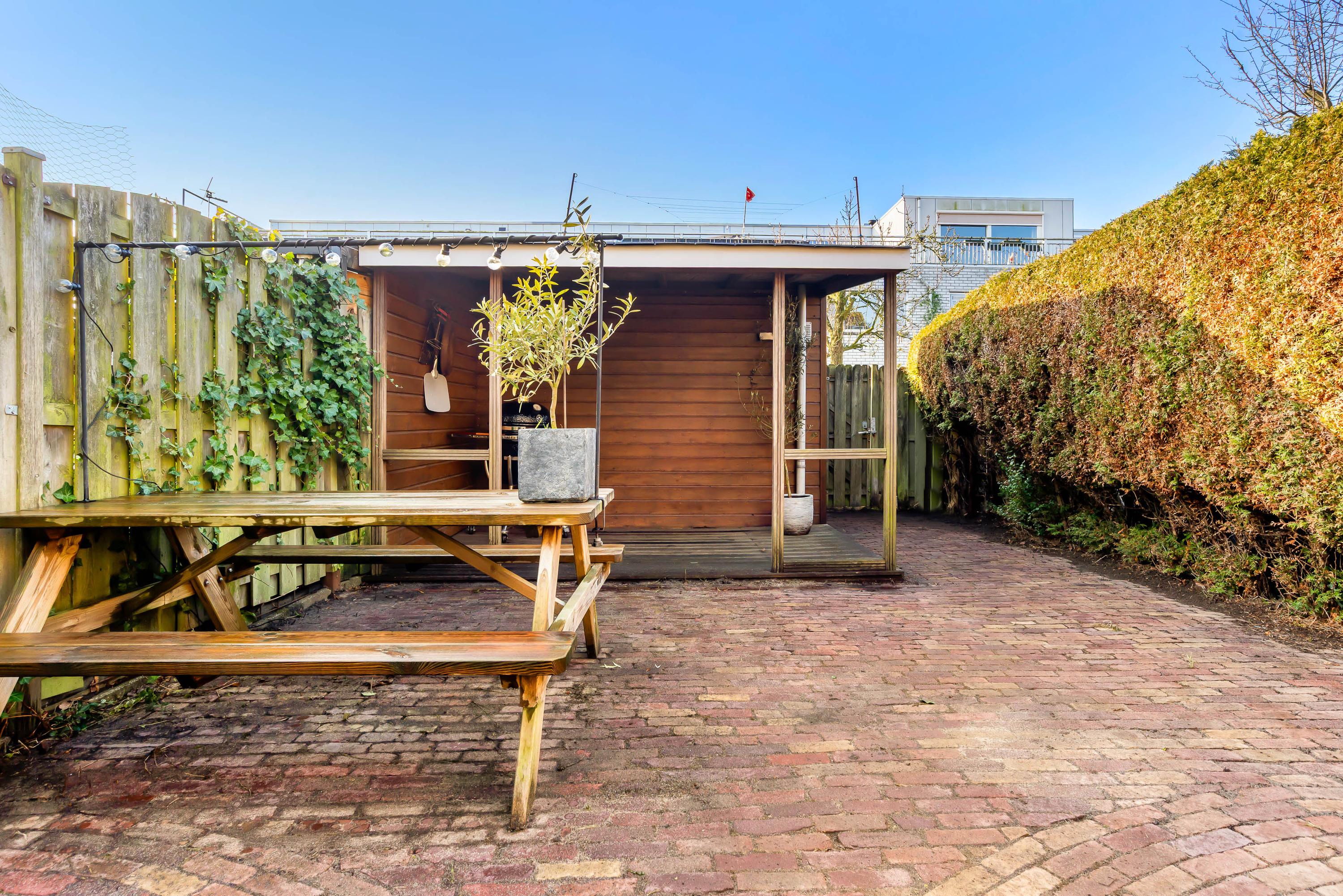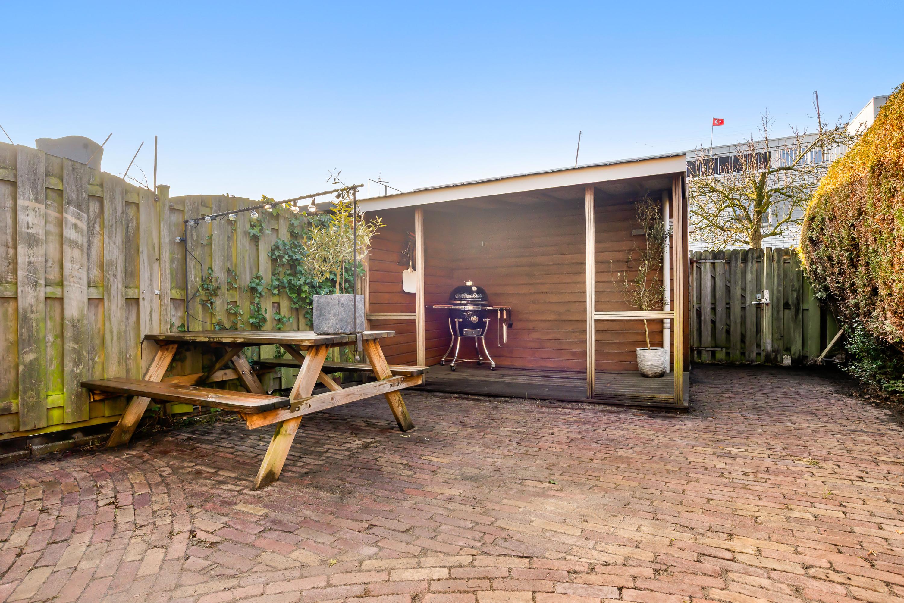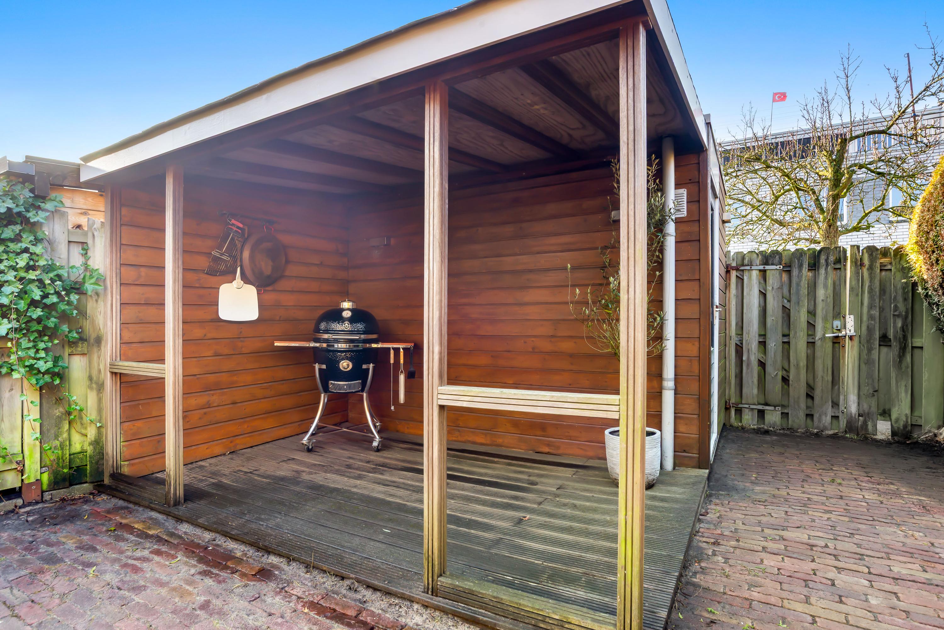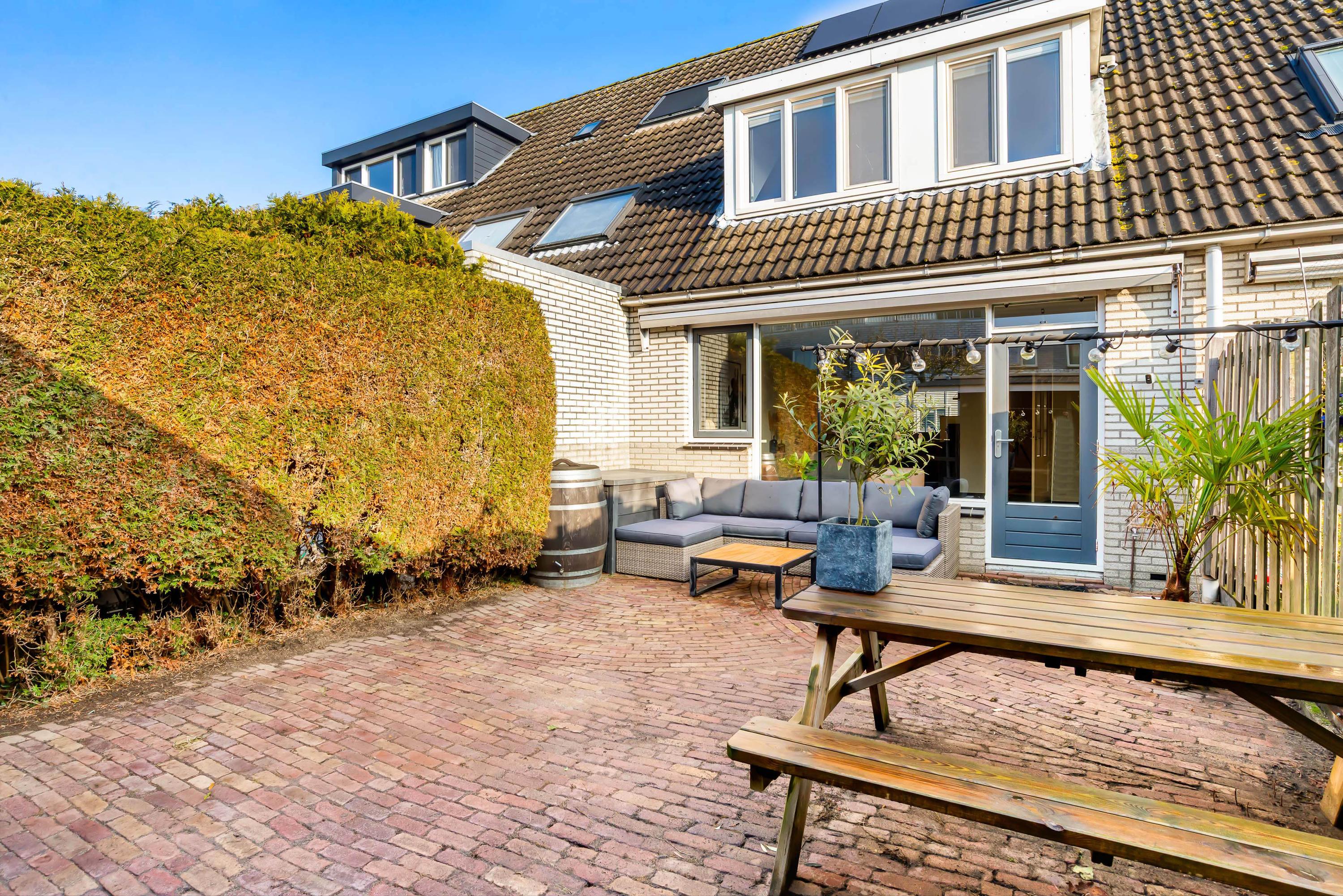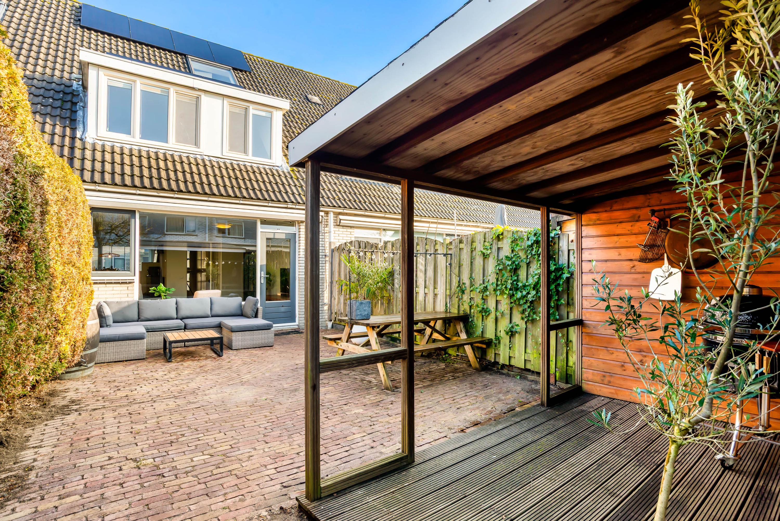 De onderhoudsvriendelijke tuin op het zuidwesten is voorzien van een overkapping, ideaal voor buitenactiviteiten. Er is parkeergelegenheid voor twee auto's op eigen terrein. Verder zijn er negen zonnepanelen en het huis is volledig geïsoleerd, wat bijdraagt aan een energielabel A. De woning ligt nabij scholen, speeltuinen en een recreatiegebied, met goede verbindingen naar het openbaar vervoer en uitvalswegen.