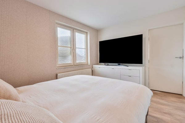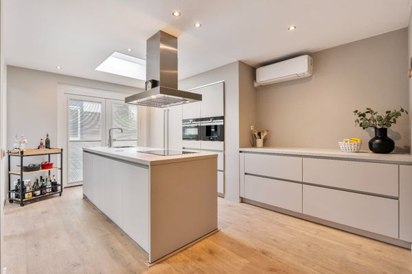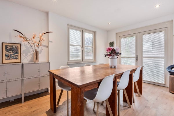 Wat deze verdieping extra bijzonder maakt, zijn de dubbele openslaande deuren in zowel de keuken als de eethoek. Deze geven toegang tot een sfeervol dakterras van ca. 29 m2.