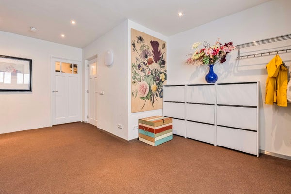 Naast het woondeel beschikt de begane grond over een volledig zelfstandige multifunctionele ruimte van ca. 60 m2 met een eigen entree. De ruimte biedt talloze mogelijkheden en kan uitstekend dienen als kantoor, praktijk of atelier, maar ook worden omgevormd tot woonruimte. De multifunctionele ruimte is voorzien van houten kozijnen, twee airco-units, een praktisch keukenblok en een separaat toilet met fontein.