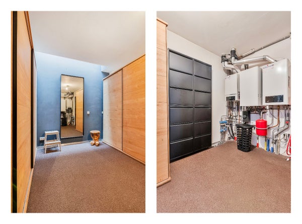 Wanneer u de woning betreedt, komt u direct in een ruime entree van ca. 20 m2 met dubbele openslaande deuren en biedt toegang tot meerdere praktische ruimtes. Zo vindt u hier een ruime berging van ca 14m2 met witgoedaansluiting. Deze ruimte word verwarmd middels vloerverwarming. Tevens is er een grote provisiekelder aanwezig van ca 28 m2.