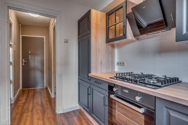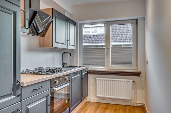 Op de hoek van de Kortestraat en het Onze Lieve Vrouweplein in Venlo-Zuid ligt een sfeervolle jaren '30 bovenwoning. Deze recent gemoderniseerde woning heeft een grote woonkamer van ca. 28 m² en een gesloten keuken van ca. 6 m², uitgerust met moderne apparatuur zoals een gaskookplaat en vaatwasser. Boven zijn er een ruime slaapkamer van ca. 14 m² met authentieke spanten en een luxe badkamer met inloopdouche. De woning biedt voldoende bergruimte, inclusief een separate berging op de begane grond. Met een gebruiksoppervlakte van ca. 63 m² en gelegen op loopafstand van voorzieningen, zoals scholen en een winkelcentrum, is het perfect bereikbaar. De Maas en het stadscentrum zijn dichtbij, met goede autosnelwegaansluitingen.
