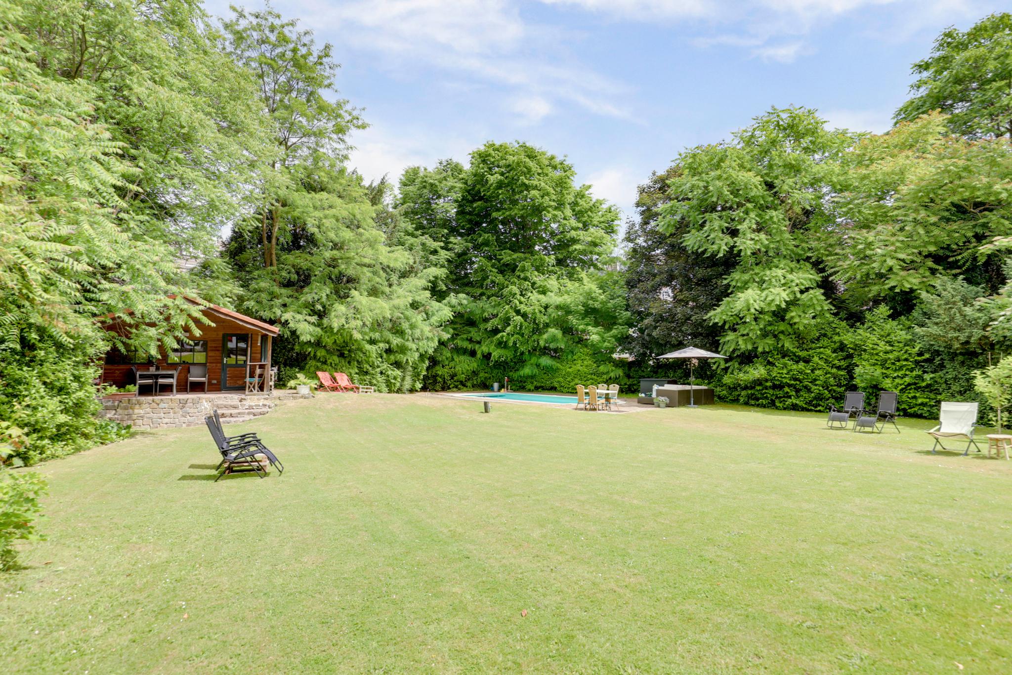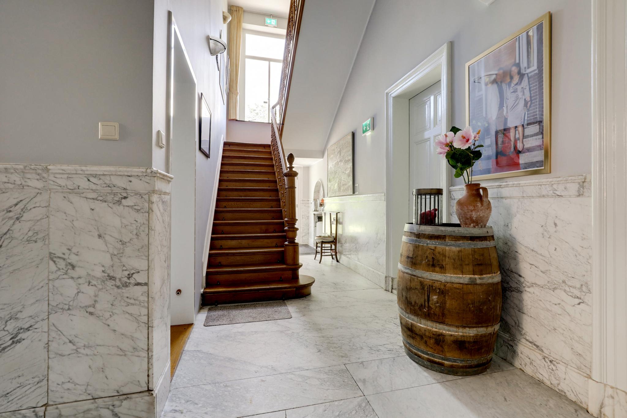 Villa Anna, gelegen in het historische Wilhelminapark in Venlo, biedt een woonoppervlakte van 708 m² en een perceel van 2605 m². Deze villa, gebouwd in 1901, heeft 15 kamers en behield originele details zoals marmeren vloeren, houtsnijwerk en glas-in-loodramen. De tweede verdieping is ingericht voor B&B gebruik met 4 luxe kamers, elk met moderne badkamers. De begane grond beschikt over een ruime living, eetkamer, bibliotheek, en een luxe keuken met vloerverwarming. De eerste verdieping herbergt 4 slaapkamers, waaronder een master met een uitzicht over het park. De villa is omgeven door een groene tuin met zwembad, sauna en meerdere terrassen. Met een bouwjaar van 1901 en een inhoud van 3037 m³, biedt het de perfecte combinatie van wonen en het exploiteren van een B&B.