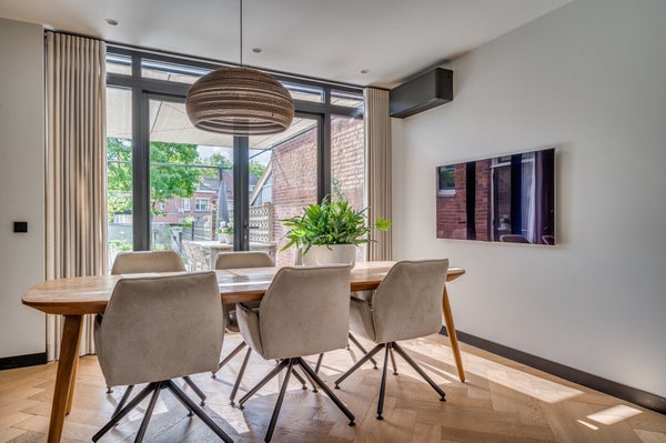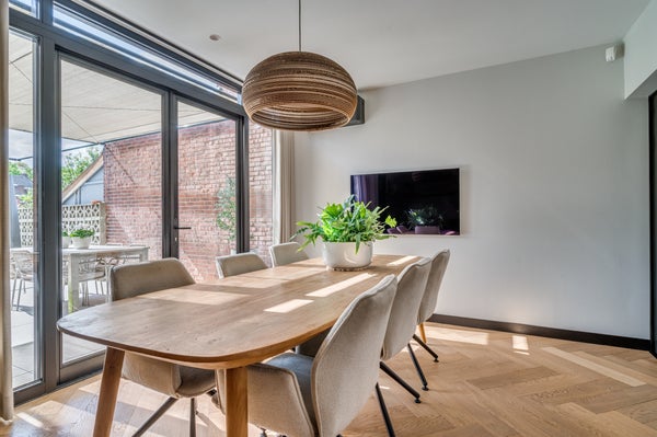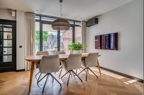 - De tussenwoning heeft een woonoppervlakte van 187 m² en beschikt over 8 kamers, waarvan 5 slaapkamers;