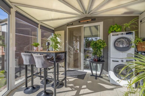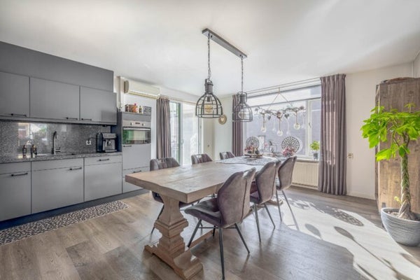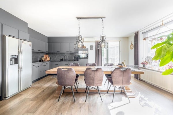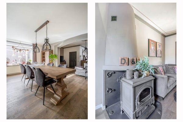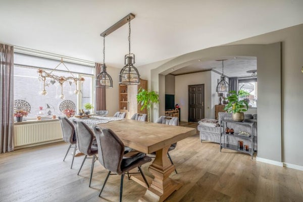 Deze unieke woning biedt veel mogelijkheden op een royaal perceel van 959 m². Met een woonoppervlakte van 252 m² bestaat de woning uit twee onder één dak verbonden woningen, ideaal voor dubbele bewoning, mantelzorg of een praktijk aan huis. De woning heeft een ruime woonkamer met open keuken, voorzien van moderne apparatuur en airco. Een grote badkamer met inloopdouche en toegang tot de grote serre die naar de achtertuin leidt. De eerste verdieping herbergt drie slaapkamers, ook met airco. Via een dakterras is een aparte studio/zolder bereikbaar, compleet met woonkamer en keukenblok. De tuin beschikt over twee garages, tuinhuisjes en een werkplaats, perfect voor ondernemers of autoliefhebbers. Deze woning biedt ruimte en flexibiliteit voor de toekomst!