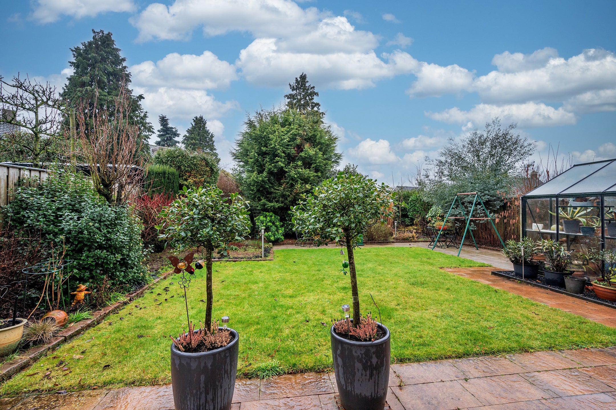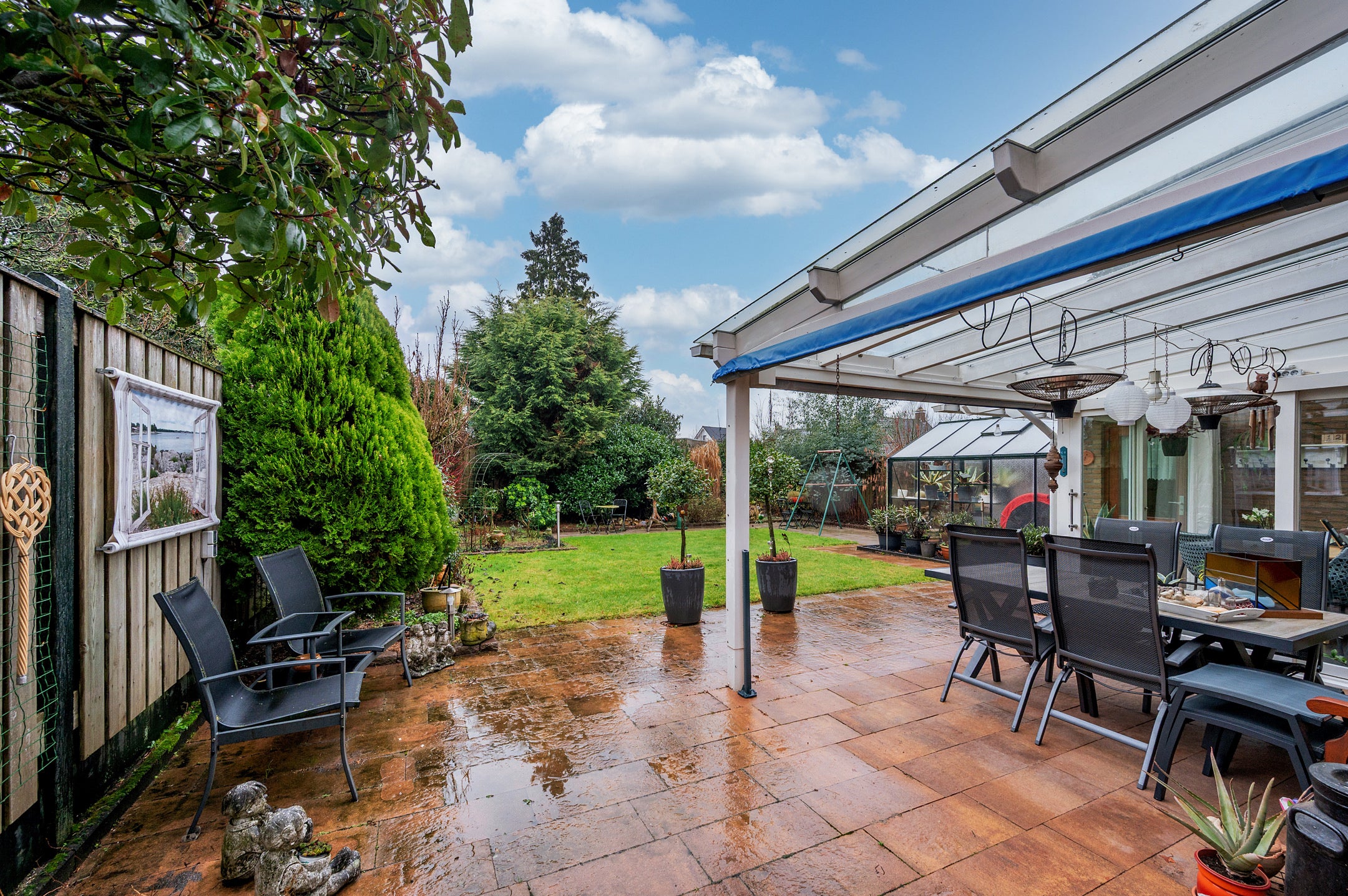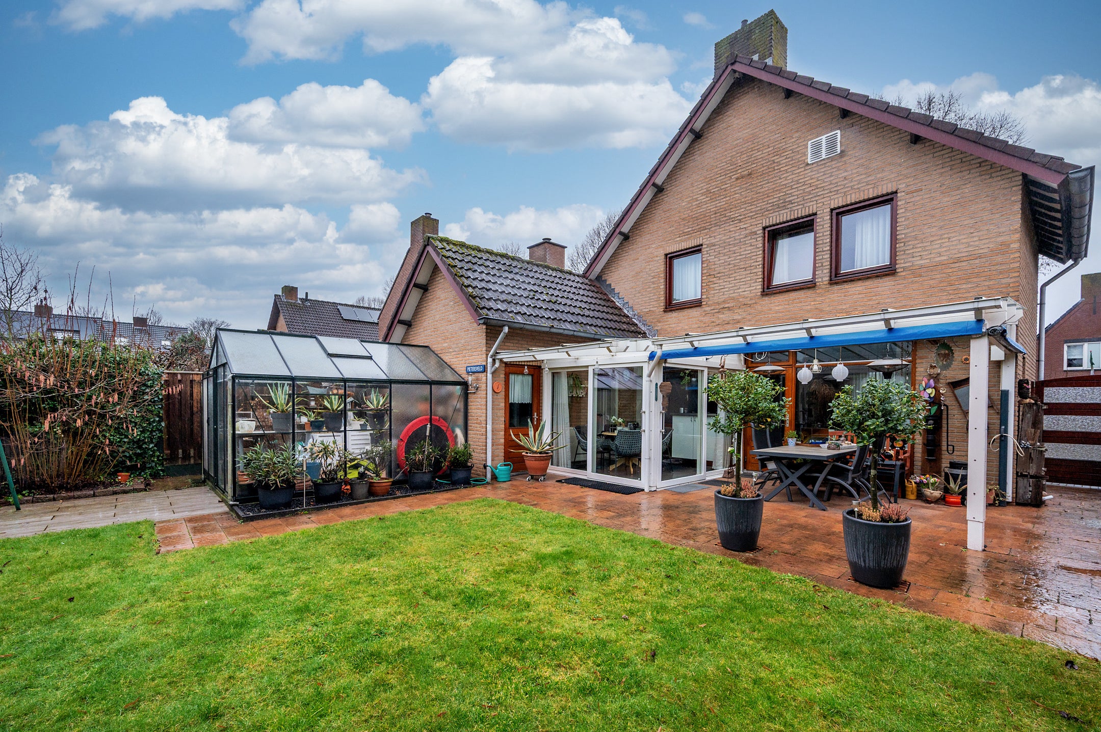 De tuin rondom is fraai aangelegd, met terrassen, een terrasoverkapping, een broeikas en twee opritten. Diverse voorzieningen, basisschool ‘De Springbeek’ en snelwegen zijn dichtbij. De woning beschikt over isolatie, zonnepanelen en centrale verwarming, wat bijdraagt aan het energielabel C. Bouwjaar is 1976 met een perceel van 450 m2 en een woonoppervlakte van 123 m2.