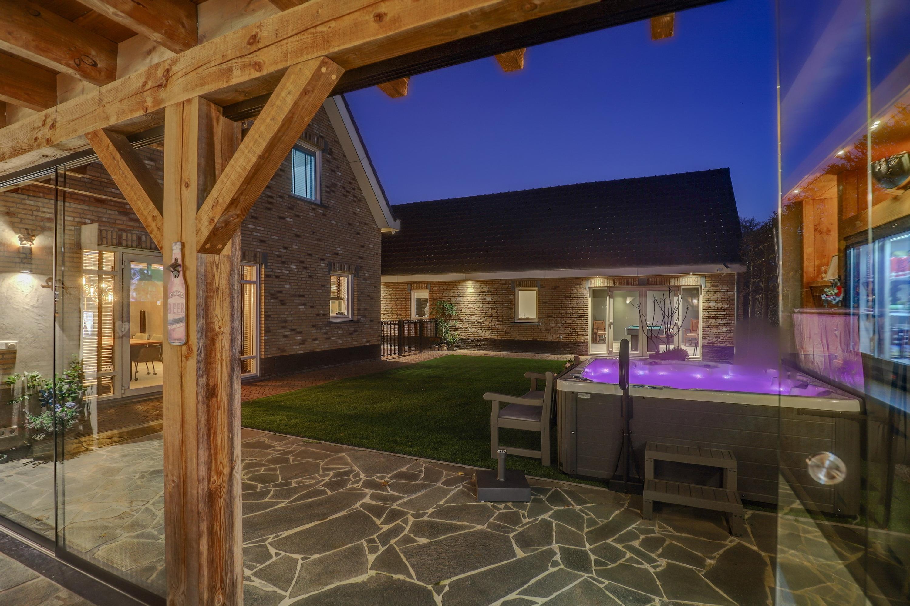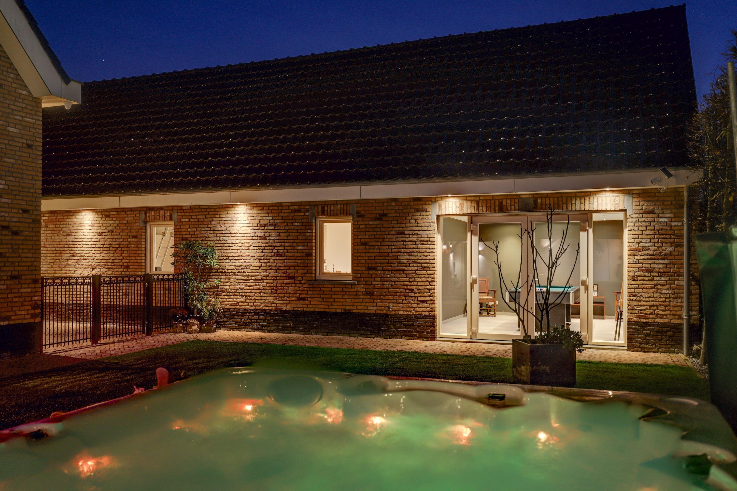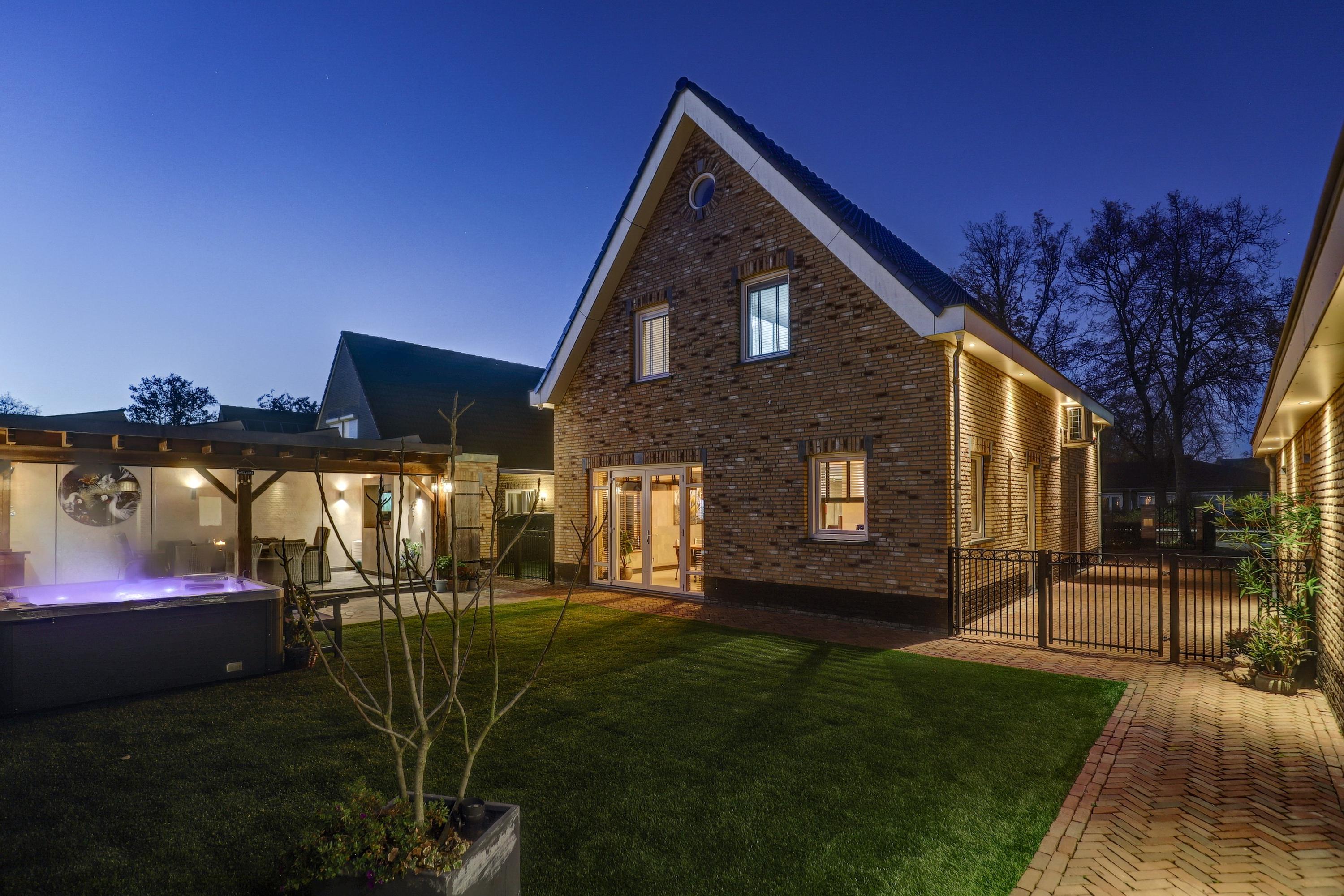 Aan de groene rand van Venlo, in de bloemenbuurt aan de Leutherweg, staat deze moderne vrijstaande woning uit 2016. Met een woonoppervlakte van 277 m² en 9 kamers, beschikt het huis over 4 ruime slaapkamers en een multifunctioneel luxe souterrain van 50 m² met veel daglicht. Er zijn 2 warmtepompen en 33 zonnepanelen voor duurzame energie. De onderhoudsvriendelijke tuin op het zuiden heeft een luxe overkapping met bar. Het bijgebouw van 77 m² bevat een aparte woonruimte die geschikt is voor dubbele bewoning. Op de eerste verdieping bevinden zich 3 slaapkamers en een royale badkamer. De zolder biedt extra opslagruimte en een slaapkamer. Het perceel van 575 m² is volledig omheind en goed bereikbaar. Met een A++ energielabel, is dit een duurzaam en comfortabel thuis.