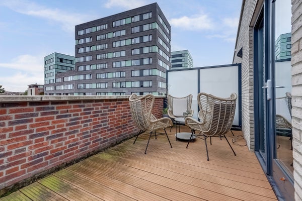 Deze instapklare tussenwoning, recent opgeleverd in 2021, bevindt zich in het nieuwbouwplan ‘De Chocoladefabriek’ nabij het centrum van Venlo en de Maas. Met een woonoppervlakte van 108 m², een inhoud van 384 m³ en een perceeloppervlakte van 75 m² biedt het huis 5 kamers. De begane grond heeft een lichte hal met een industriële look, een gezellige woonkamer met schuifpui naar de tuin, en een luxe keuken met hoogwaardige inbouwapparatuur. De eerste verdieping omvat twee slaapkamers en een badkamer met inloopdouche. Op de tweede verdieping is een open ruimte die mogelijk tot extra slaapkamers kan worden omgebouwd, en een zonnig balkon. De onderhoudsvrije tuin is perfect om te genieten. Deze woning is van hoogwaardige materialen en heeft een energielabel A.