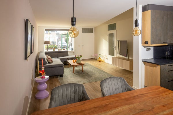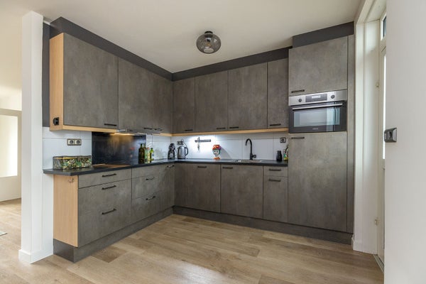 Via de hal met meterkast stap je de doorzon woonkamer met half open keuken binnen. Deze is voorzien van diverse inbouwapparatuur zoals een inductie kookplaat, afzuigkap, koelkast, combi-oven en vaatwasser en vormt samen met de woonkamer een fijne leefruimte. Koken, borrelen en gezelligheid gaan hier hand in hand. De keuken biedt directe toegang tot de tuin. De gehele begane grond is voorzien van een moderne PVC-vloer en ook een praktische trapkast mag hier niet ontbreken.